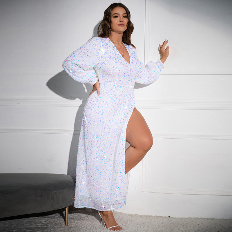 Vestido de noche con lentejuelas y abertura alta en la cintura, talla grande