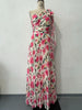 Vestido elegante y popular con estampado floral, hombros descubiertos y plegado.