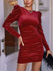 Vestido tubo ajustado de terciopelo plisado con cuello redondo popular