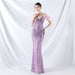 Posicionamiento Floral Lentejuela Artesanía Orden Cabello de Avestruz Vestido de Noche de Alta Gama