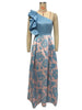 Vestido de un solo hombro con cuello diagonal y borde de loto estampado