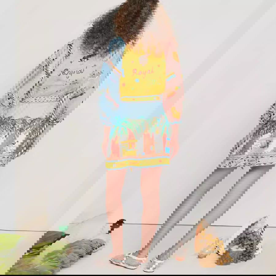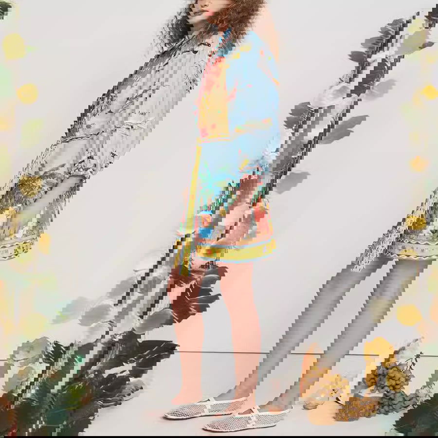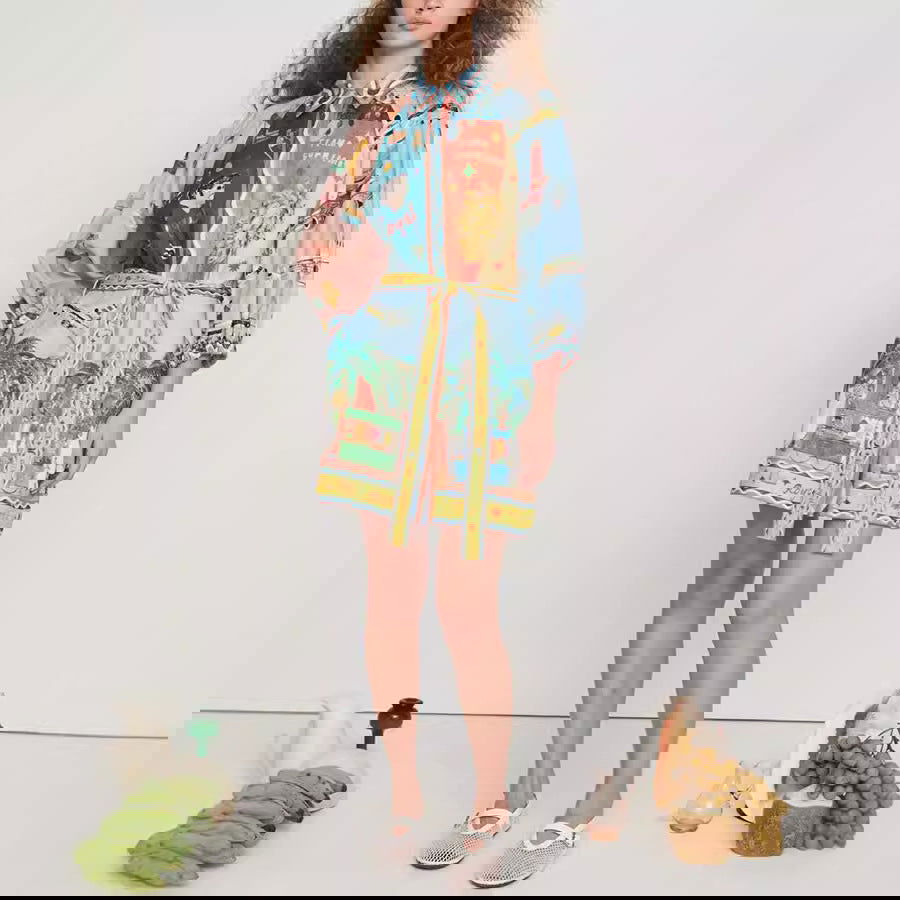 Vestido casual holgado con mangas 3/4 y cordones estampado