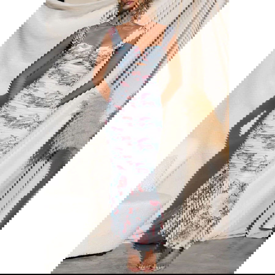 Vestido informal estampado con tirantes y cremallera para vacaciones, vestido ajustado