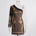 Printed Diagonal Neck Off One-Shoulder Patchwork Bead Dress