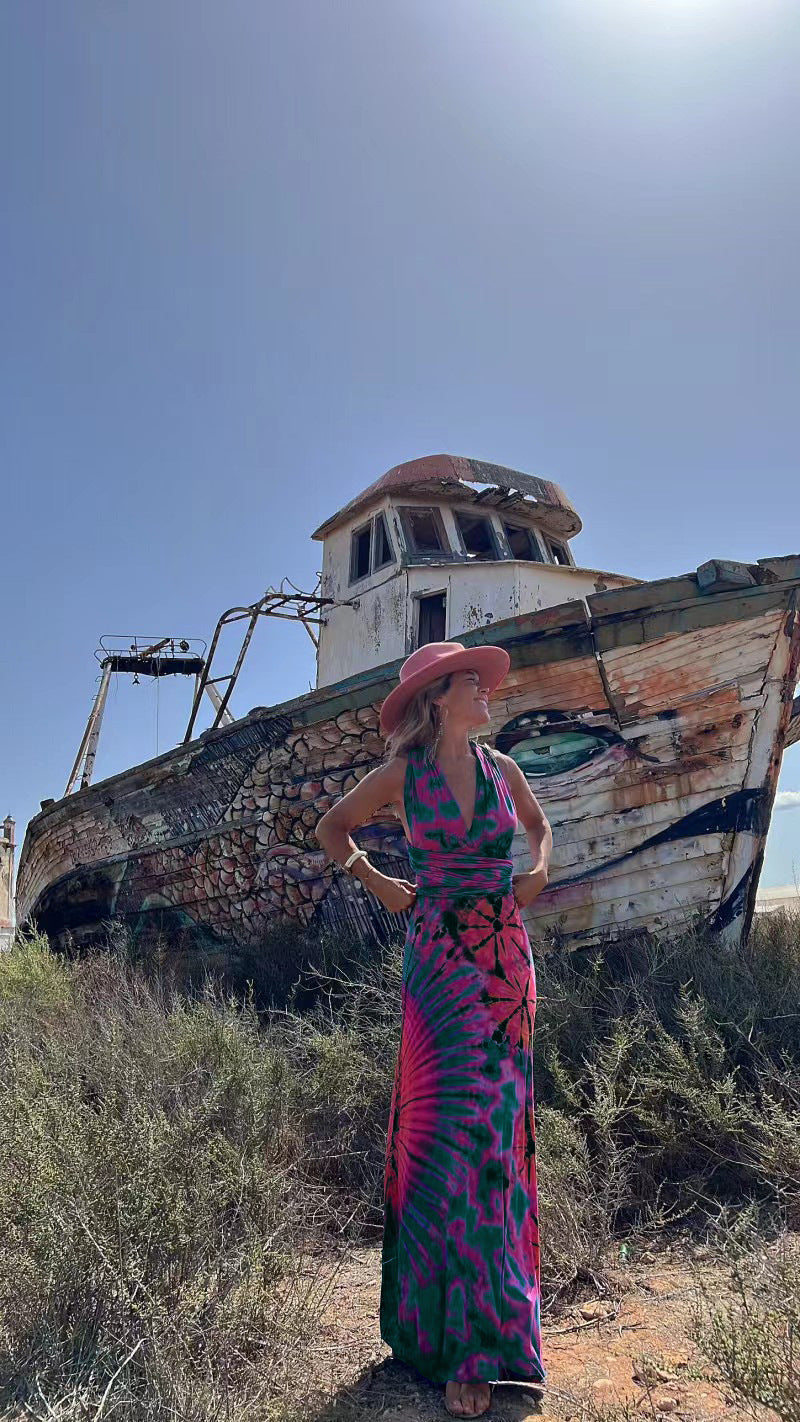 Vestido estampado sin mangas con cuello en V y corte A