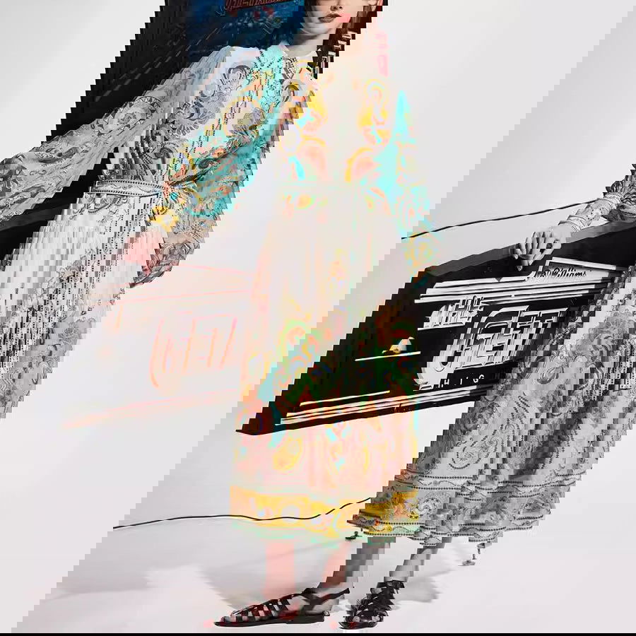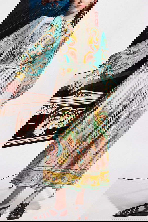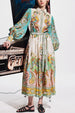 Vestido amplio con estampado de manga larga abullonada y cordones