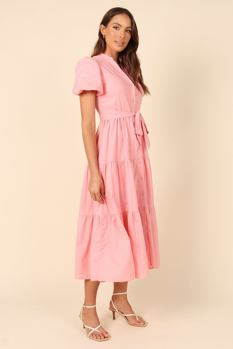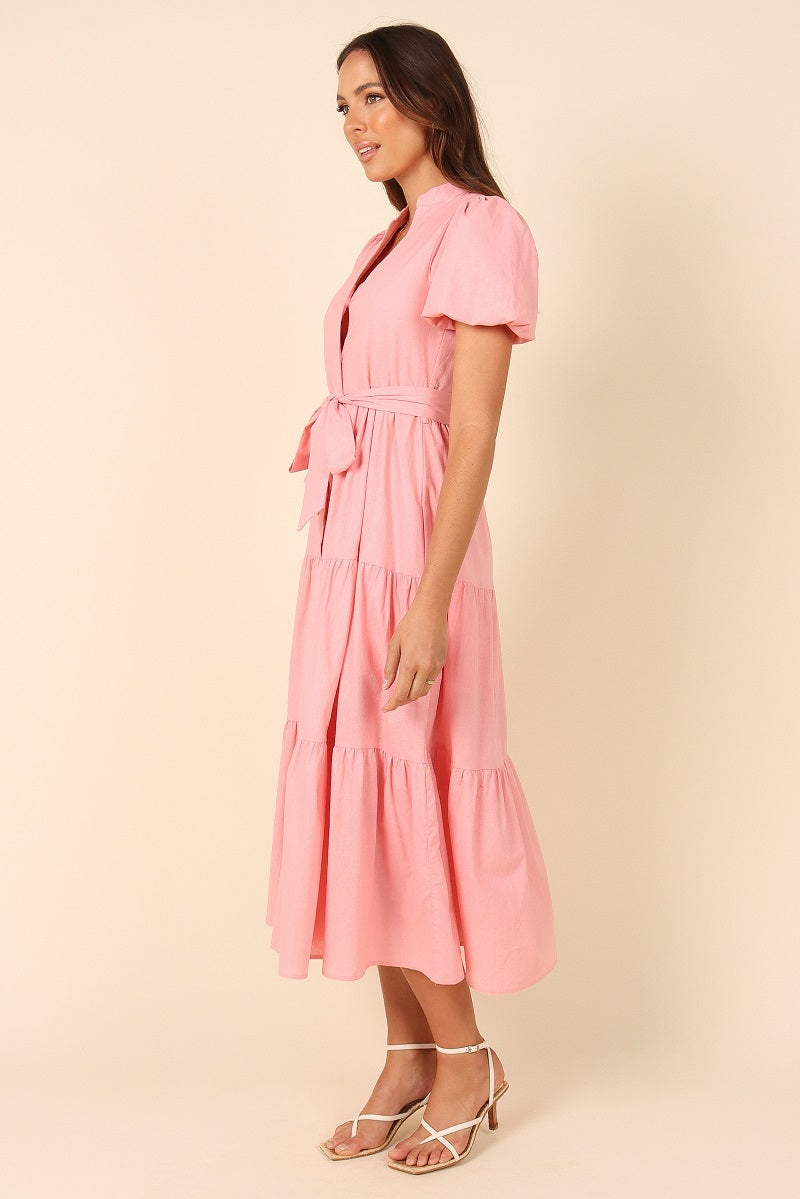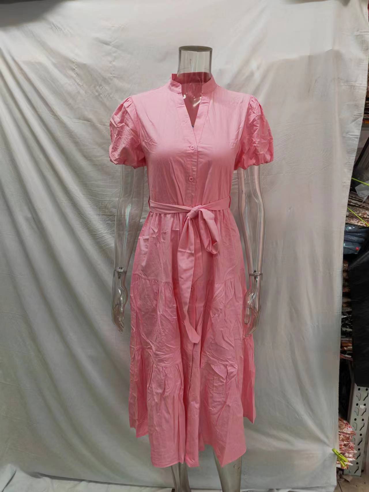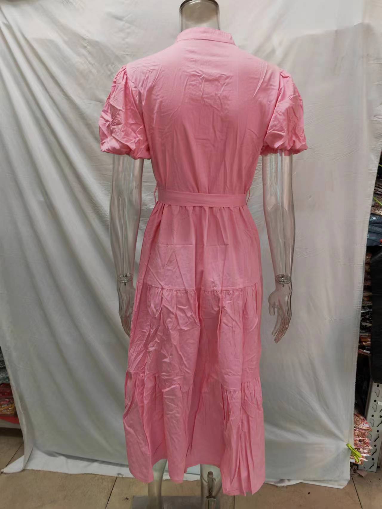 Vestido de algodón con mangas abullonadas y cinturón de manga corta