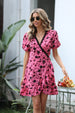 Vestido con cuello en V, mangas abullonadas y borde peplum