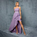 Vestido de noche morado para fiesta de graduación, corto, delantero, largo, trasero, un hombro, vestido de cóctel