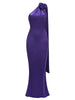 Purple Satin Halter Neck 3D Flower Scarf Maxi Dress