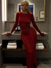 Red Lace-Up Pleated Long Sleeve Maxi Dress