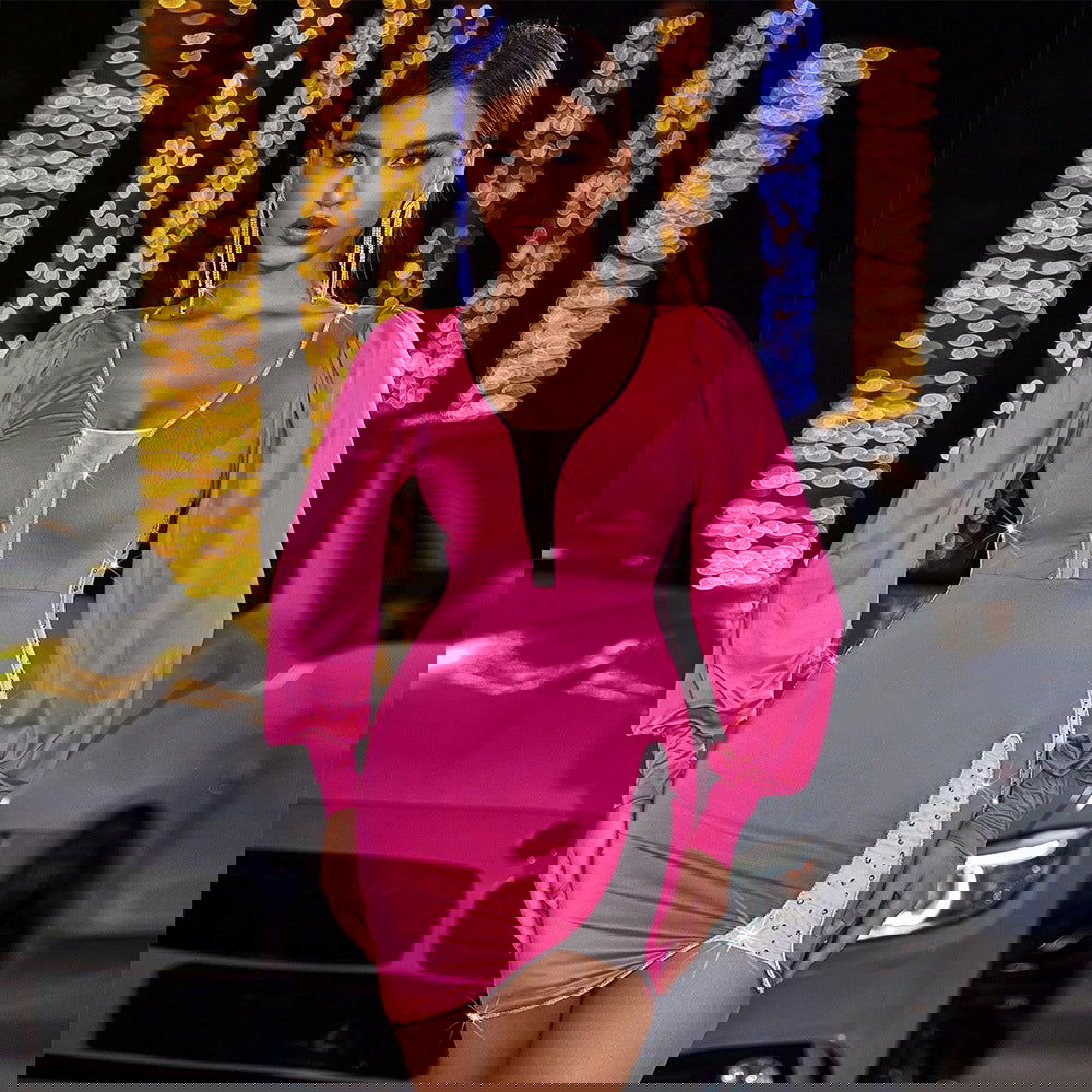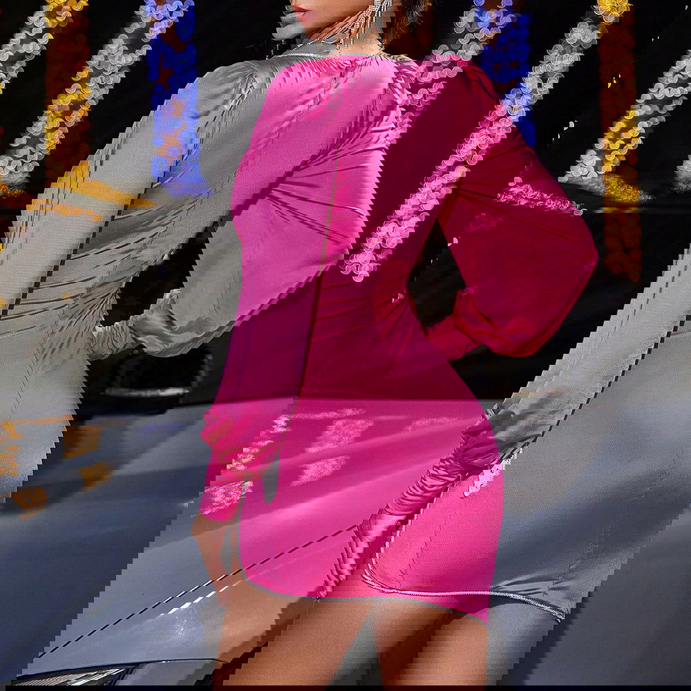 Vestido de noche de discoteca de manga larga con costuras de diamantes de imitación