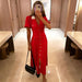 Ribbed Contrast Collar Short Sleeve Buttoned Midi Dress