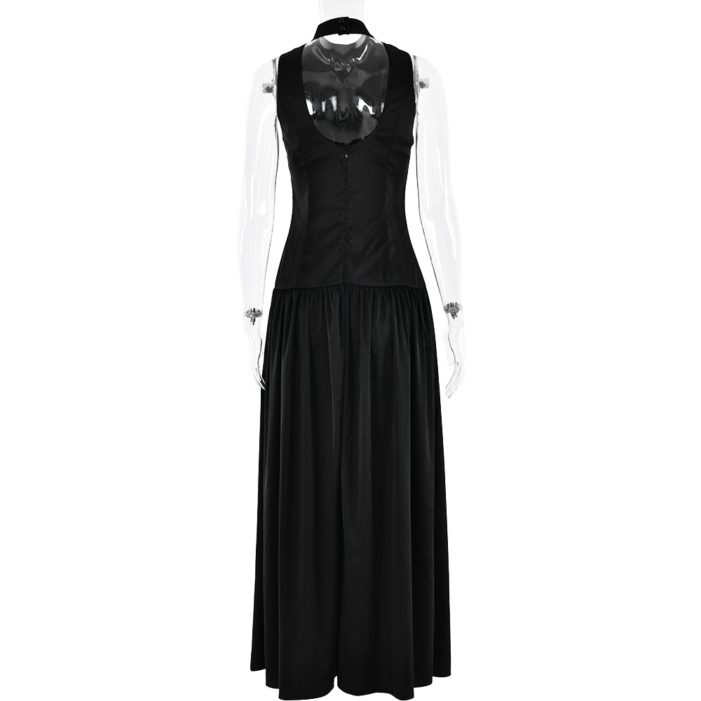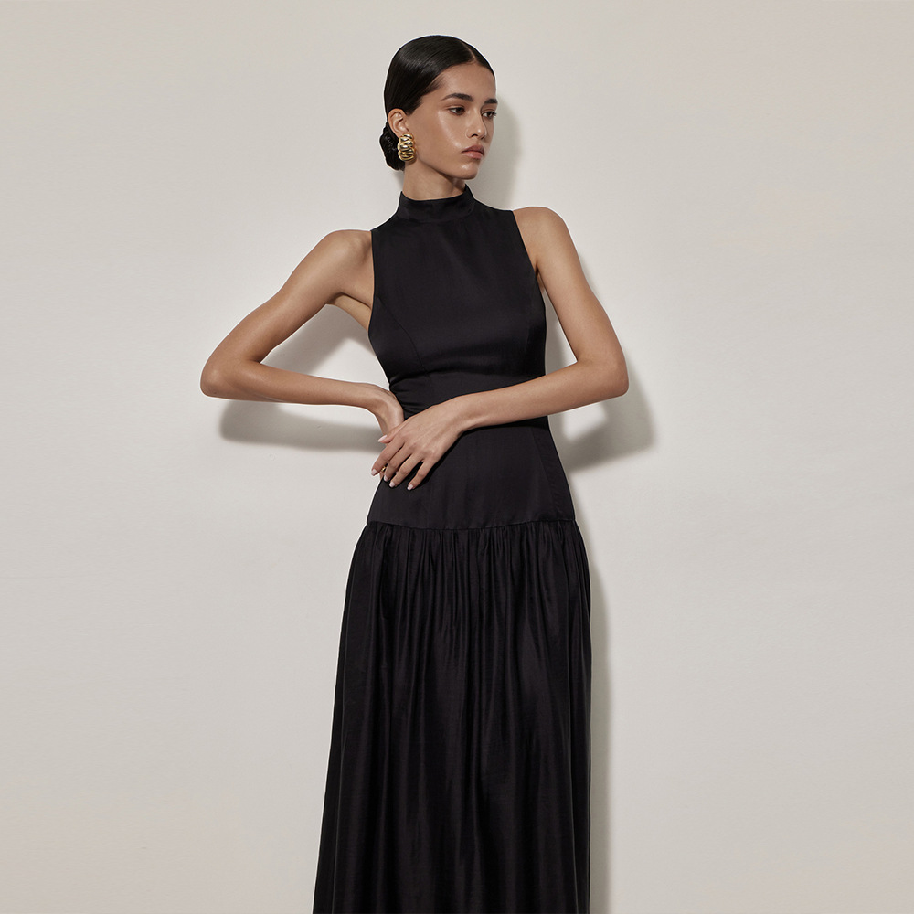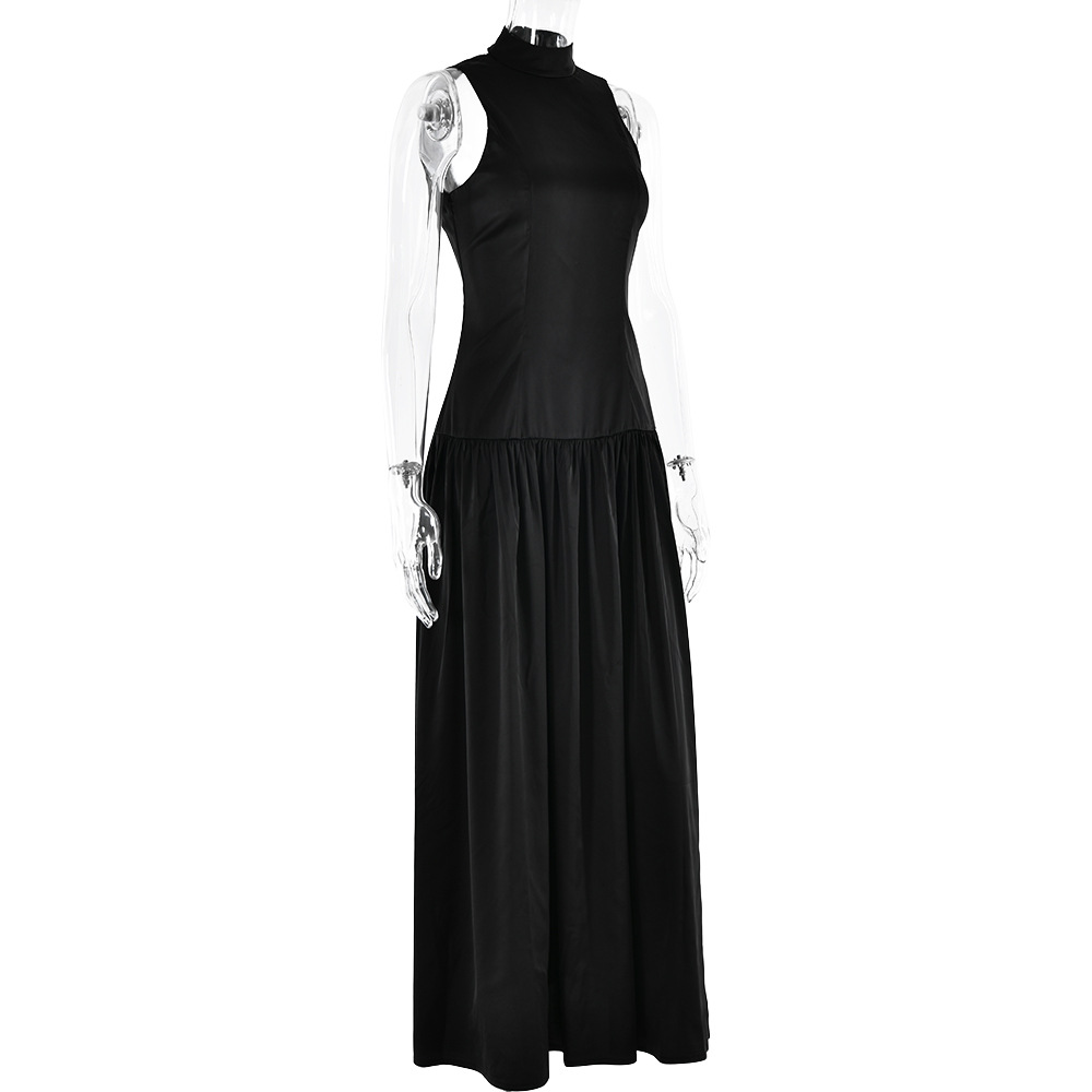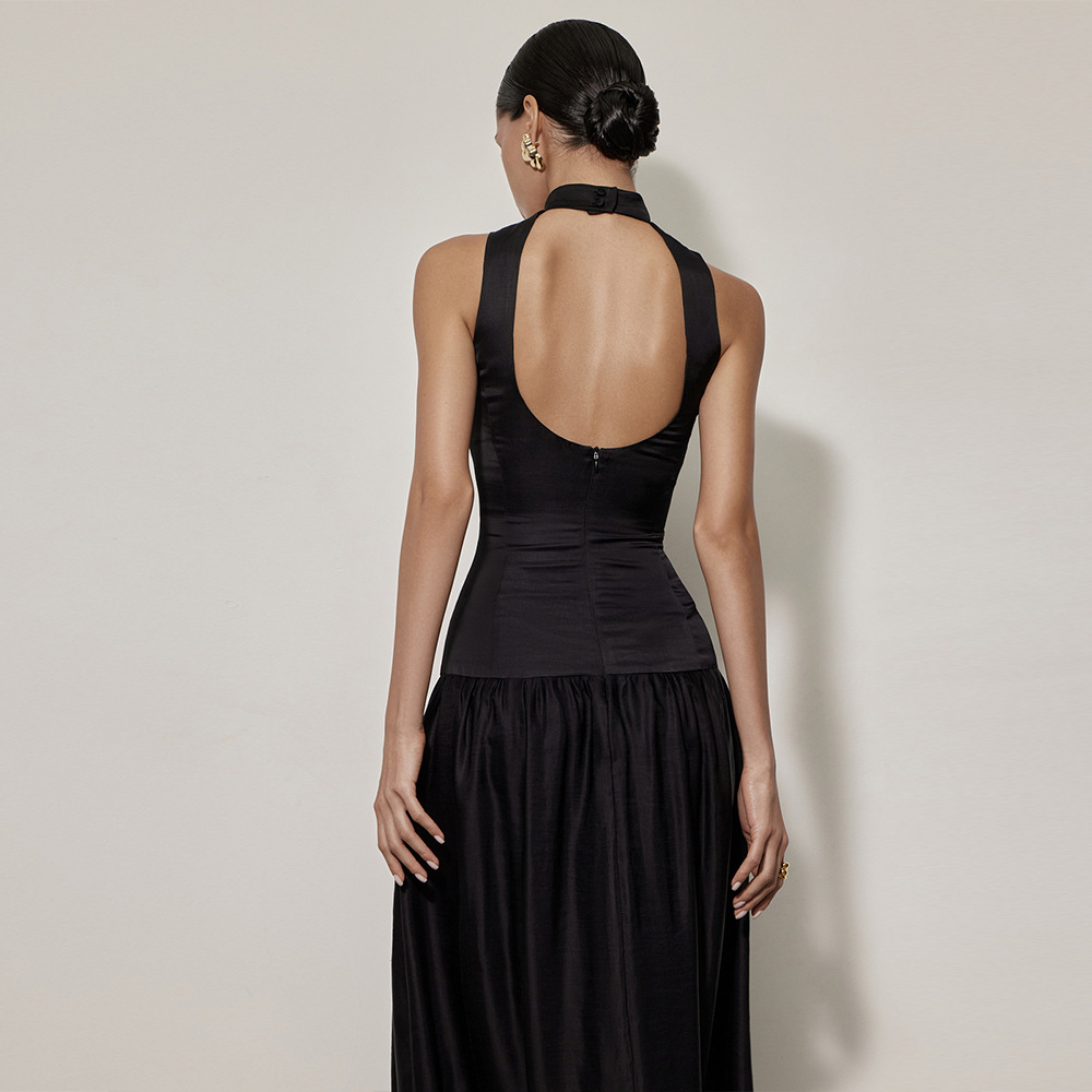 Vestido de cuello redondo, sin mangas, sin espalda, ajustado, de satén