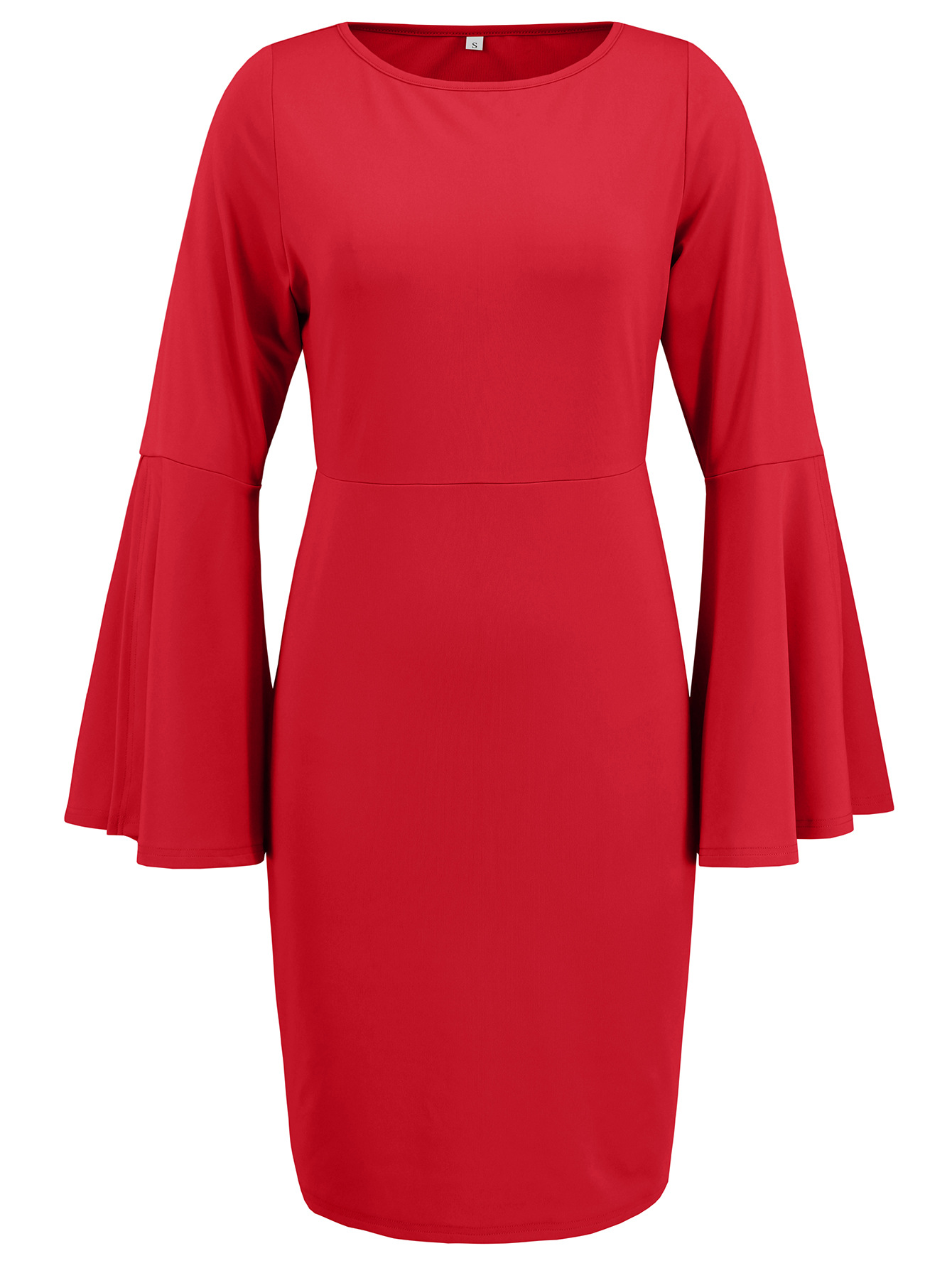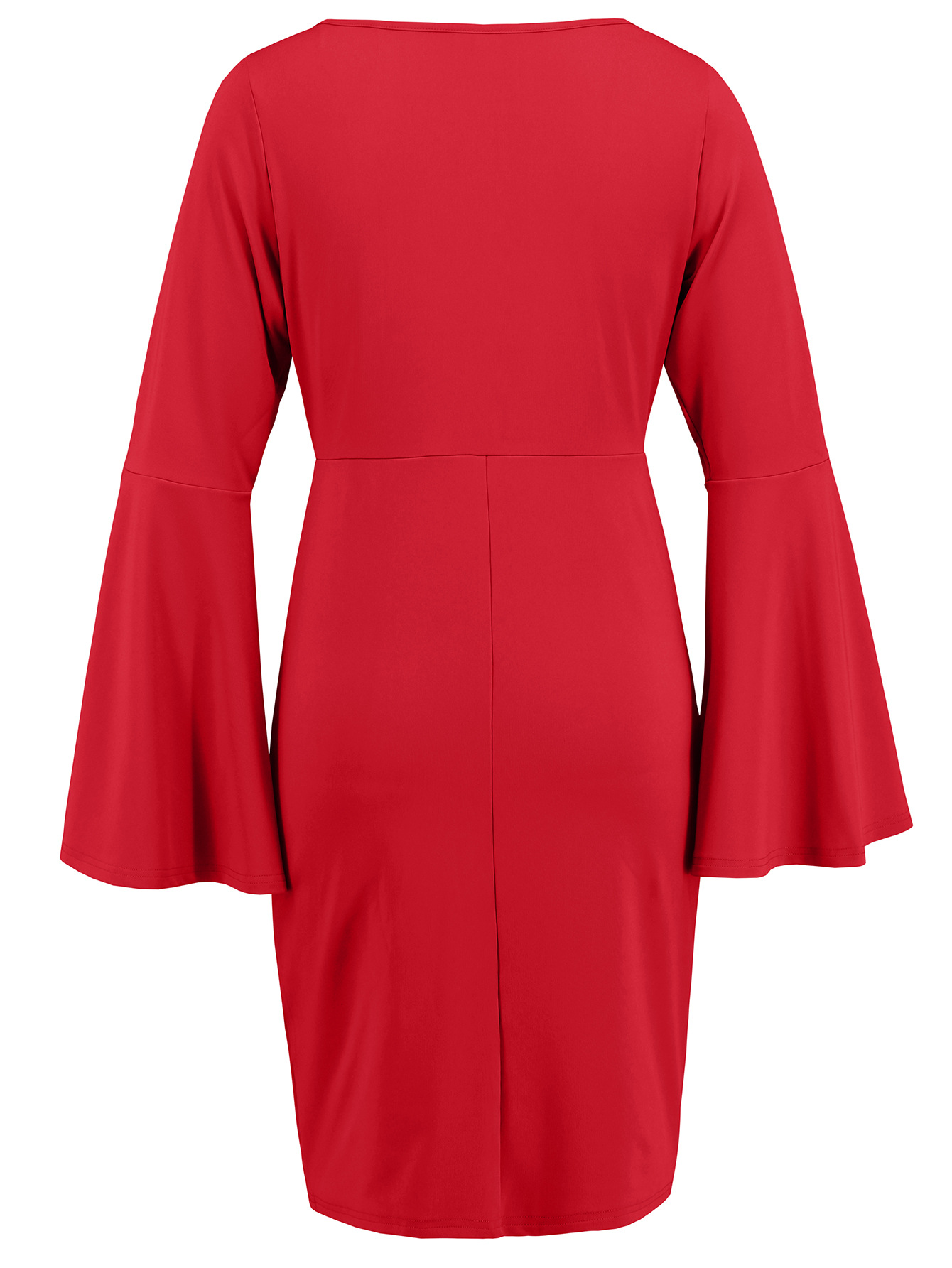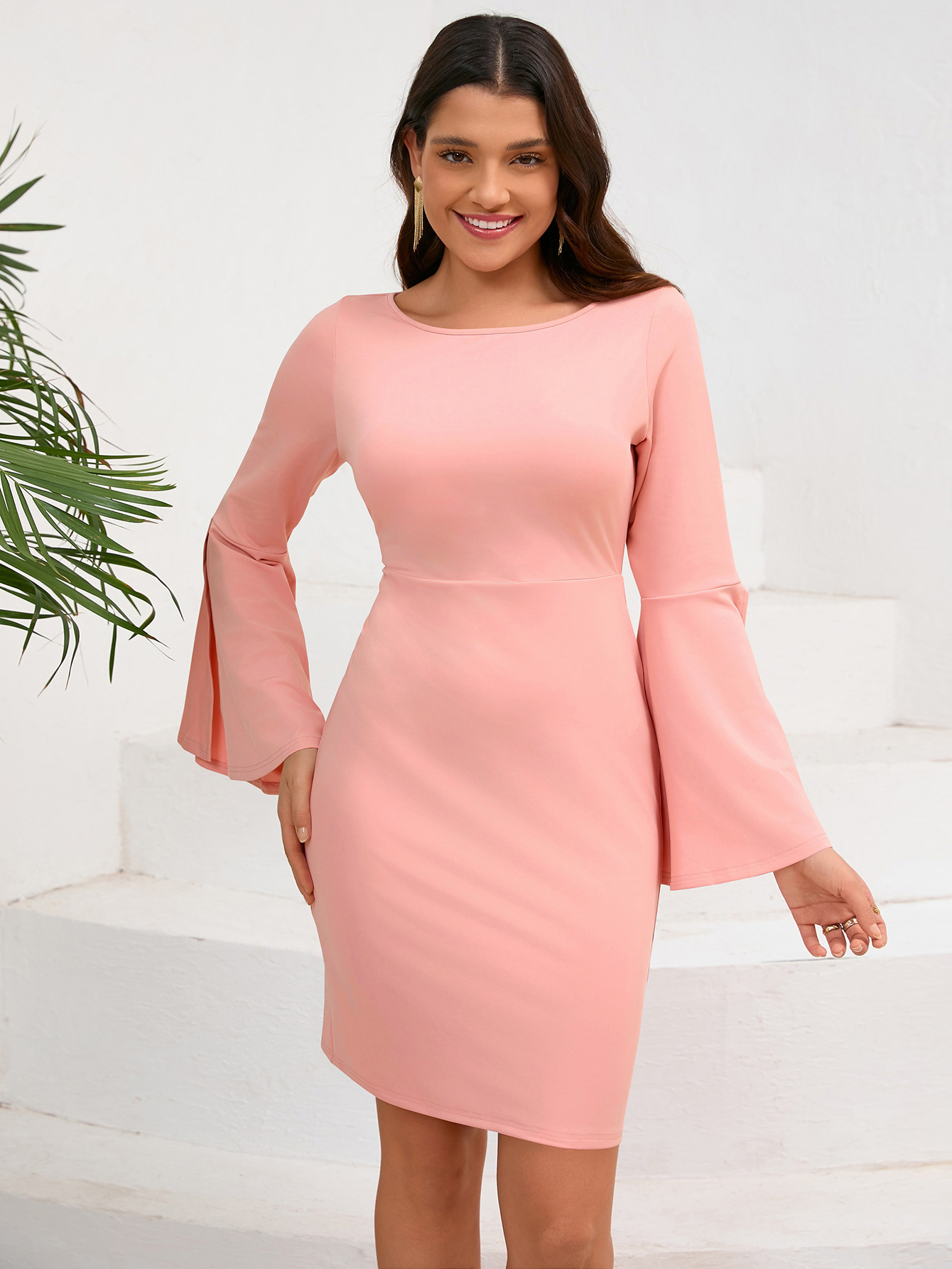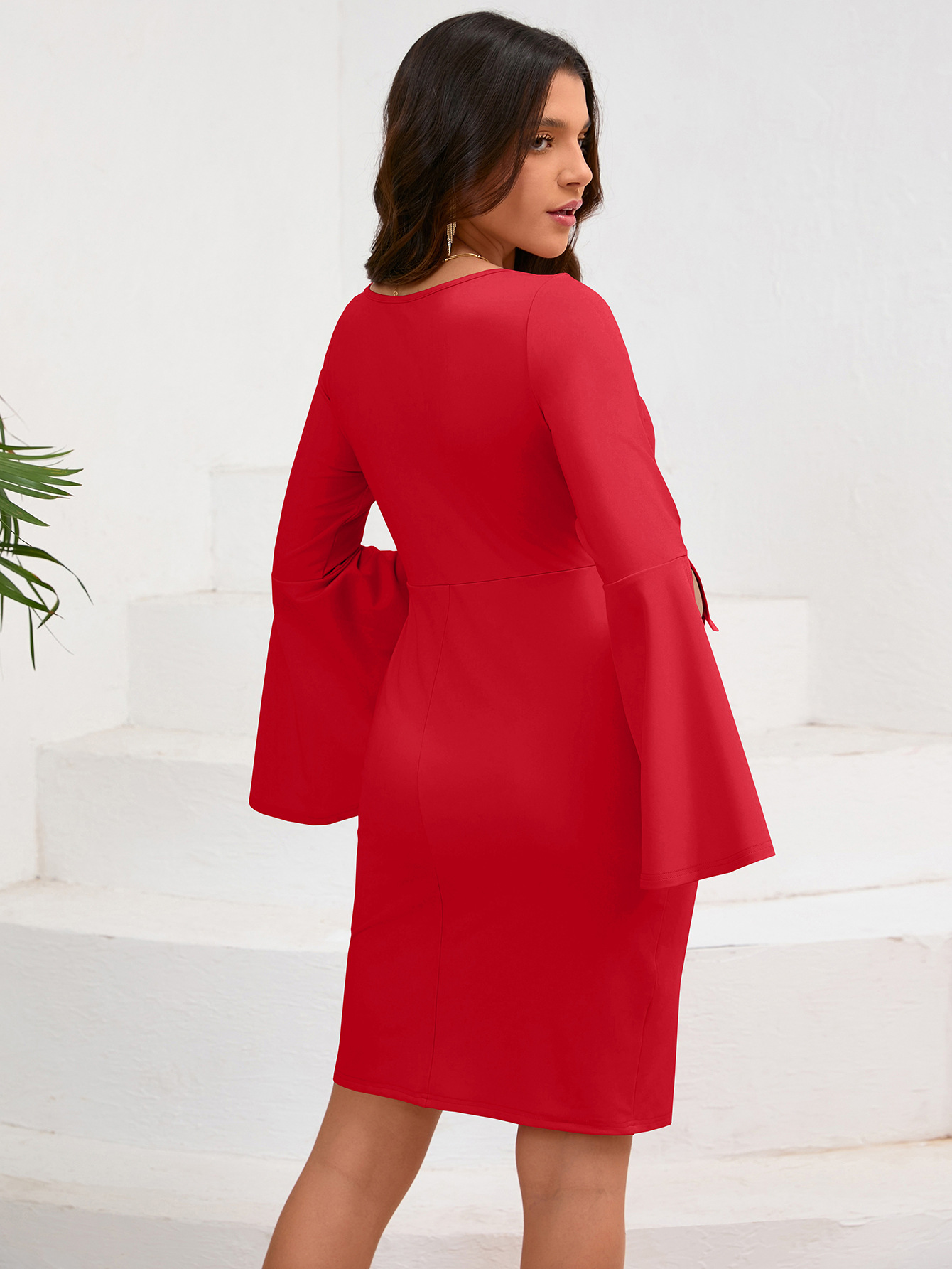 Vestido formal con cuello redondo, mangas acampanadas y escote en la cadera