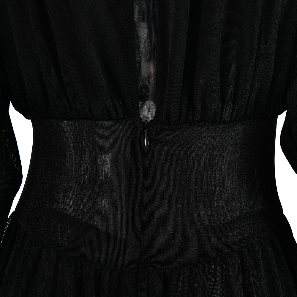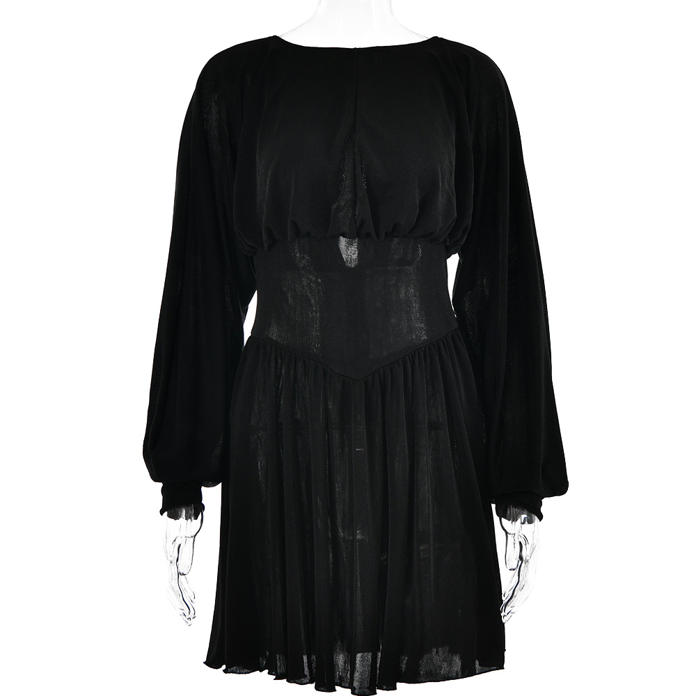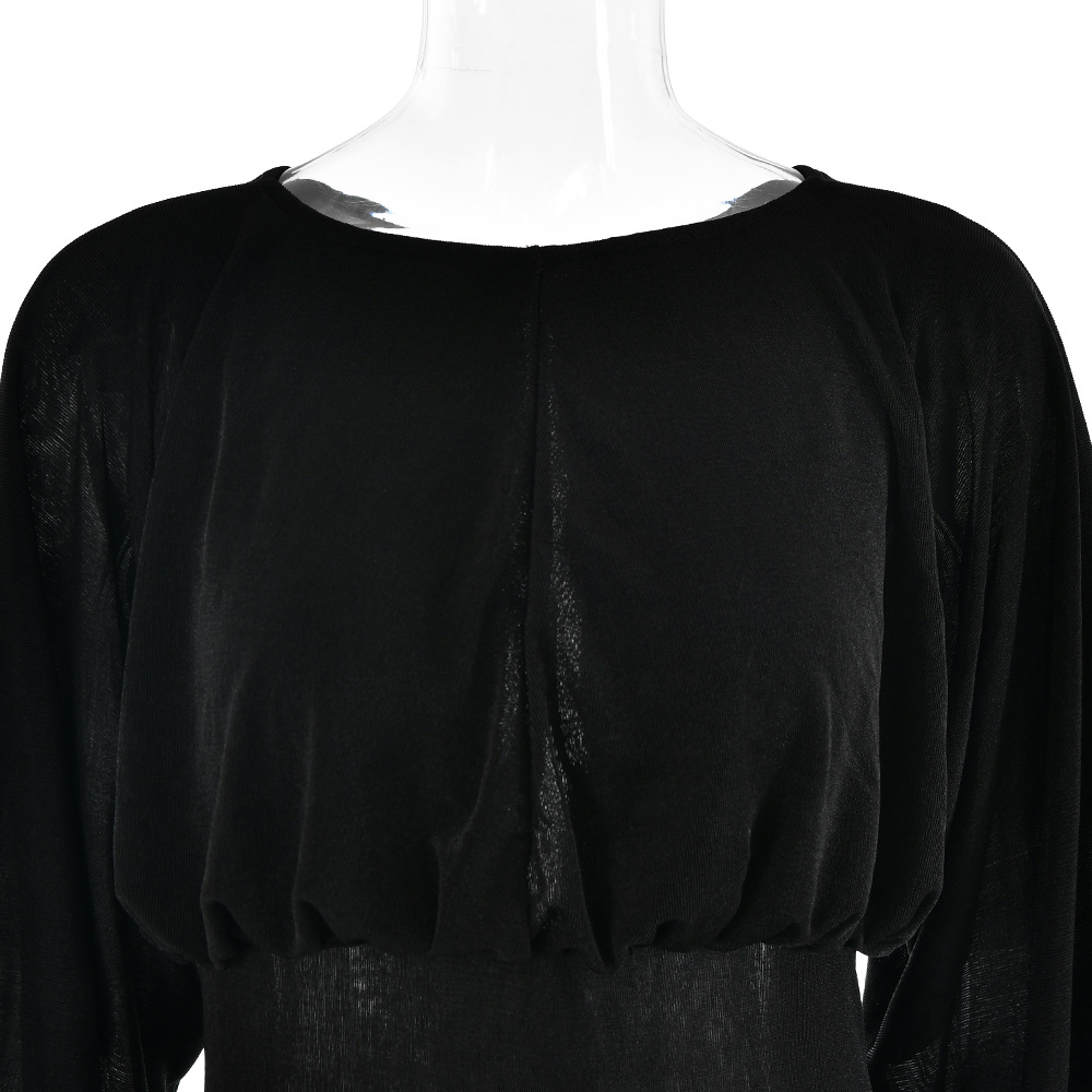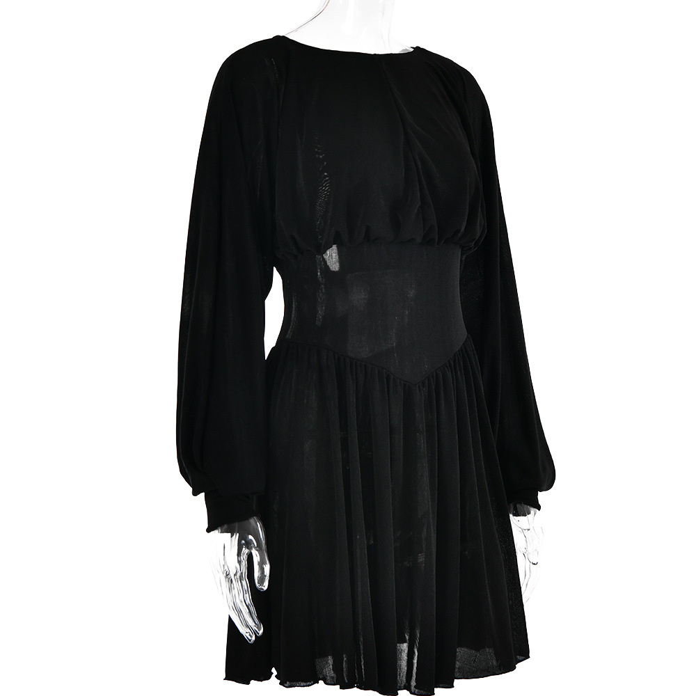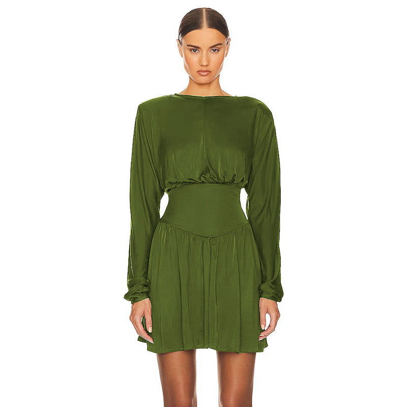 Vestido plisado adelgazante con cuello redondo y mangas farol