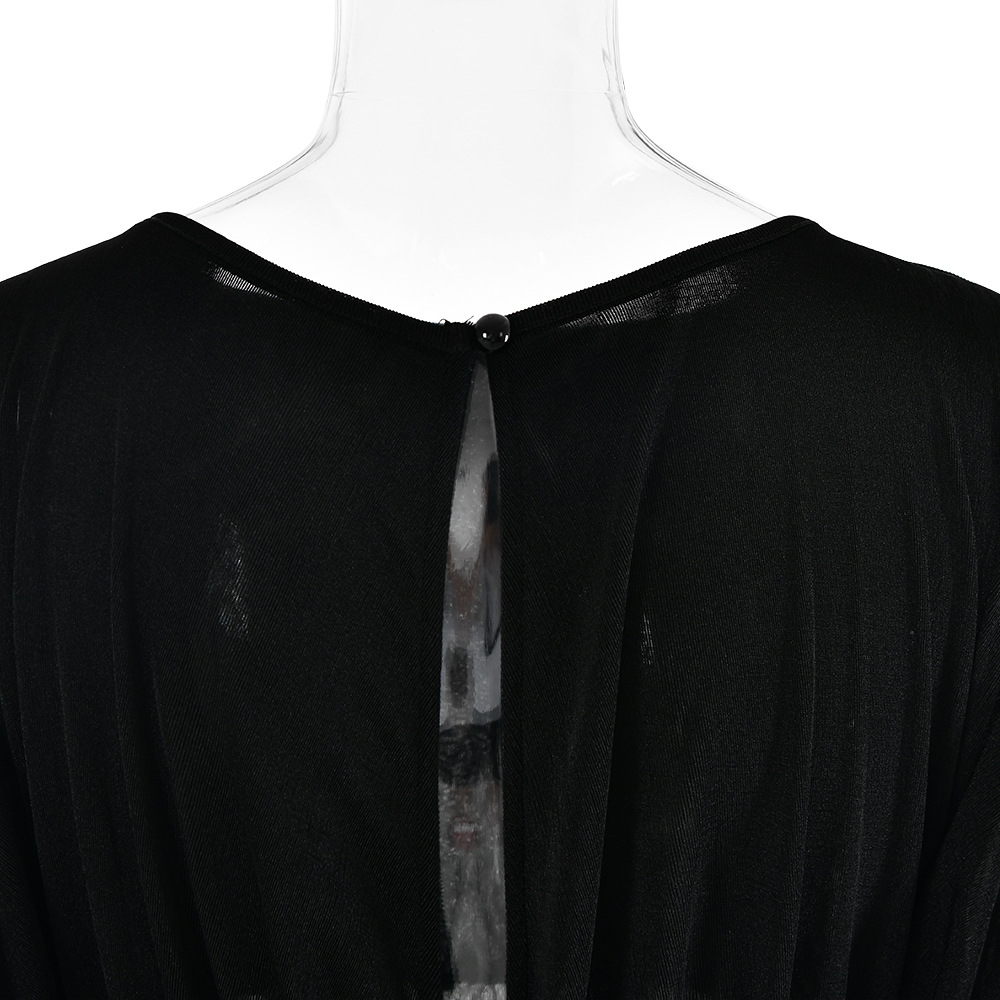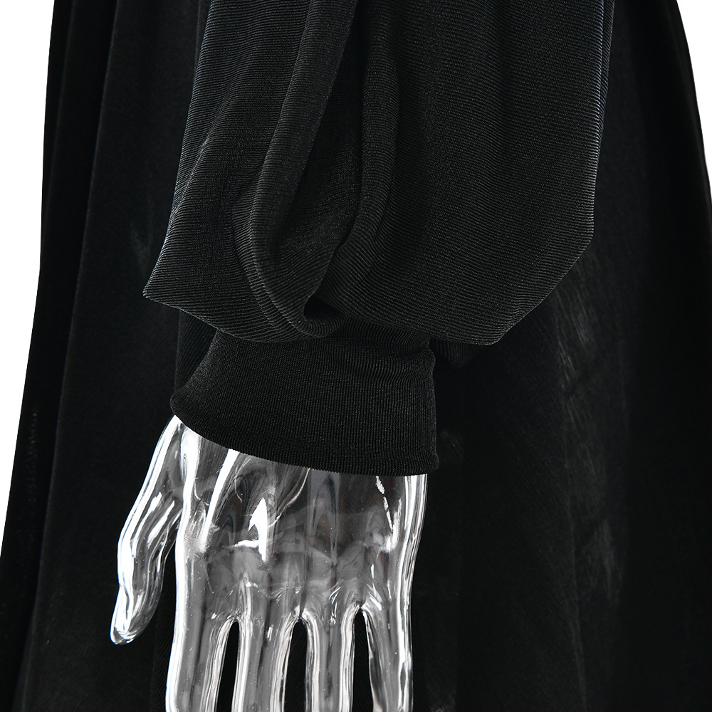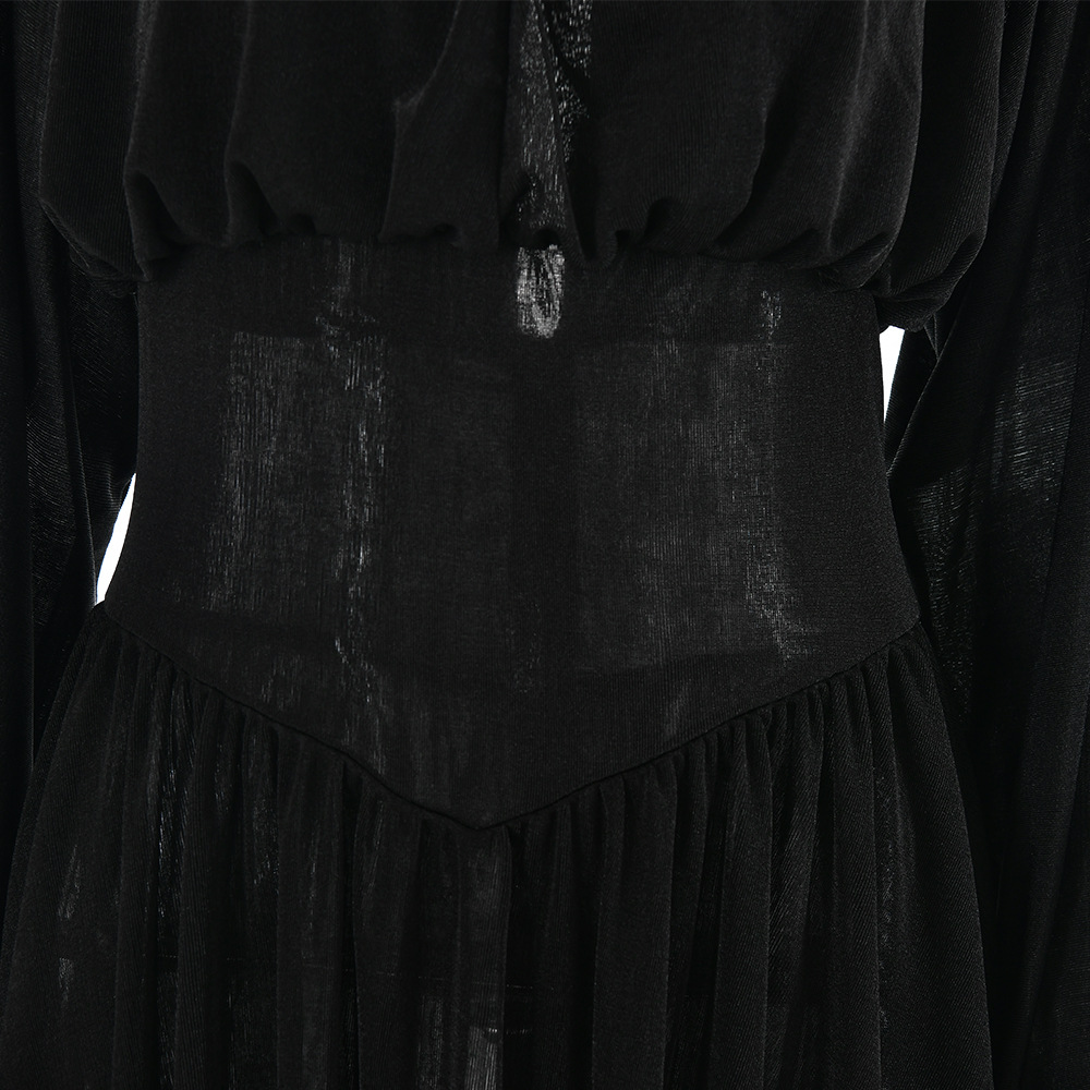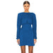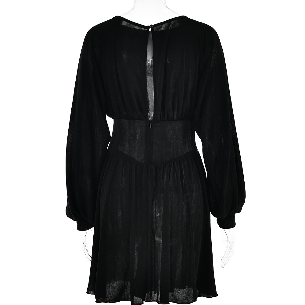 Vestido plisado adelgazante con cuello redondo y mangas farol