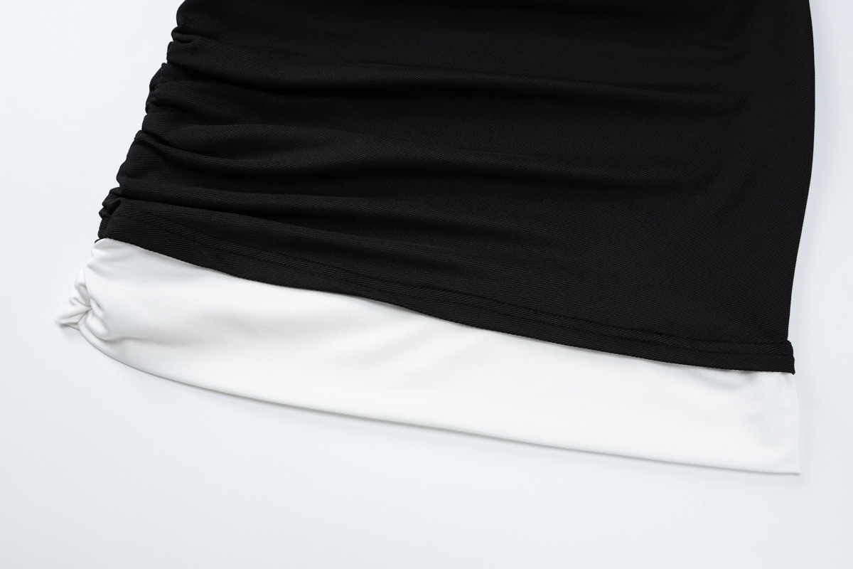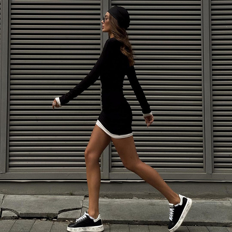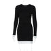 Vestido tubo ajustado plisado de color a juego con cuello redondo y manga larga