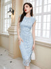 Vestido tubo sin mangas con cuello redondo y vestido midi