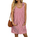 Vestido informal de cuello redondo a rayas con bolsillos y tirantes abotonados