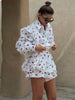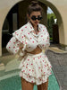 Ruffled Printed Long Sleeve Top and Shorts Sets