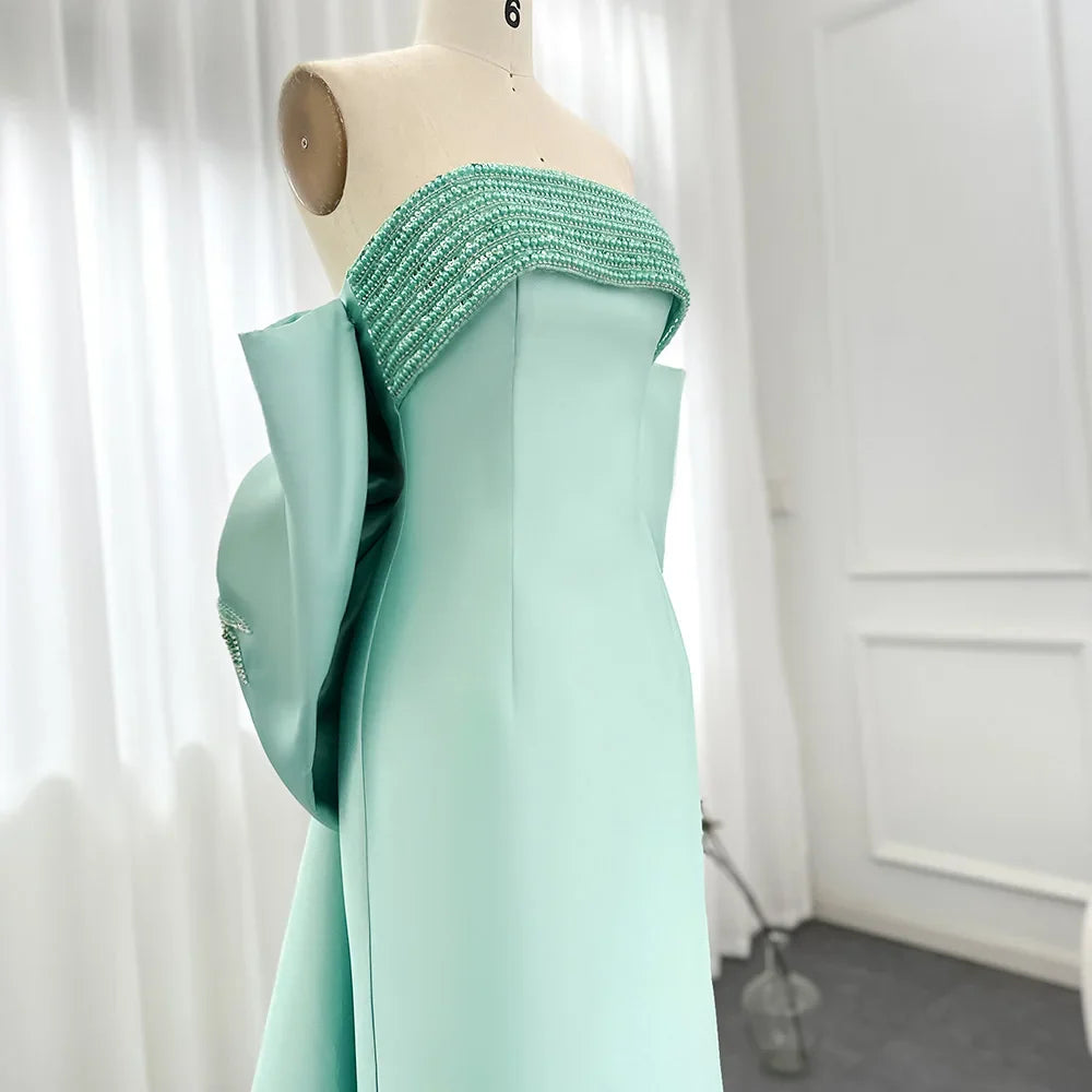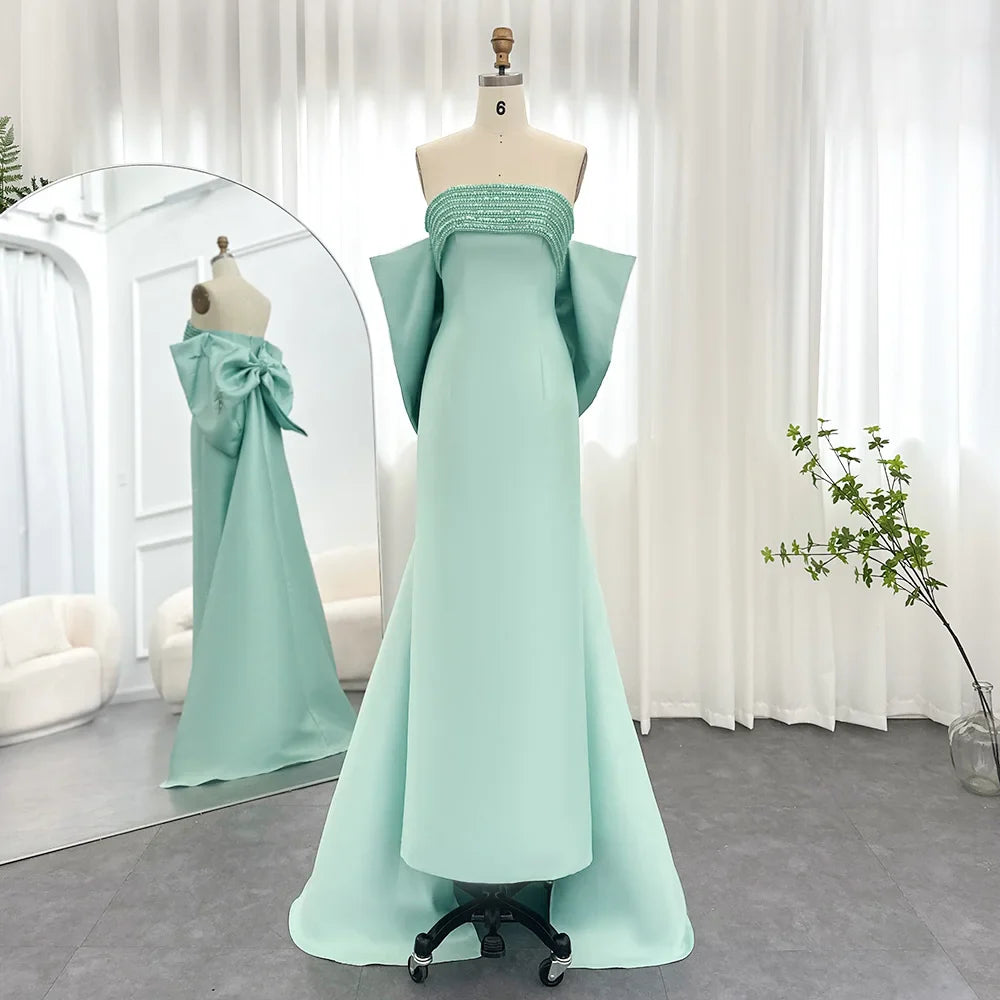 Sage Green Evening Dress with Beaded Cape