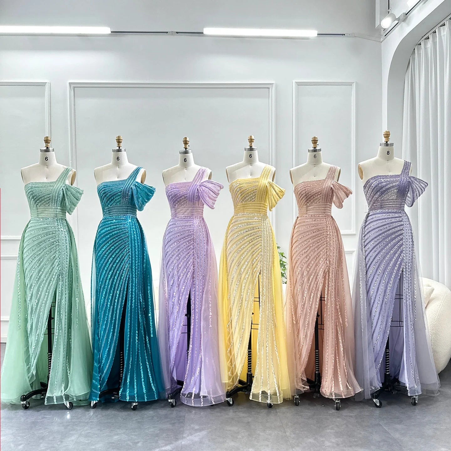 Sage Green One-Shoulder Evening Gown with Overskirt :