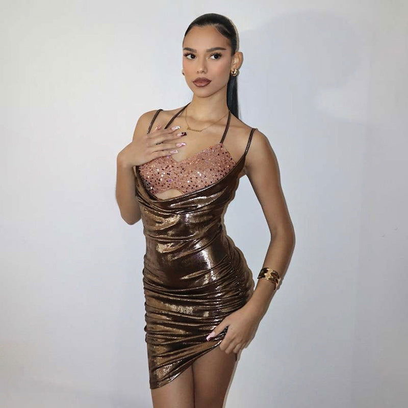 Vestido de dos piezas con cuello halter y cordones con costuras falsas