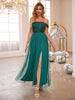 Vestido de noche con costura de gasa y lentejuelas, color liso