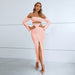 Vestido tubo de manga larga con hombros descubiertos y abertura alta