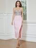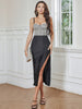 Vestido tubo sin mangas con corsé de acero con almohadillas en el pecho y cuentas de diamantes de imitación