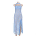 Sheer Lace Sash Halter Neck Ruffle Hem Dress
