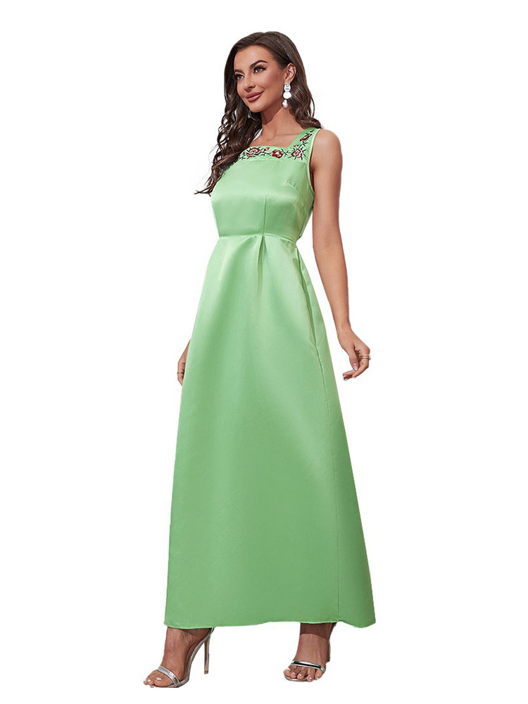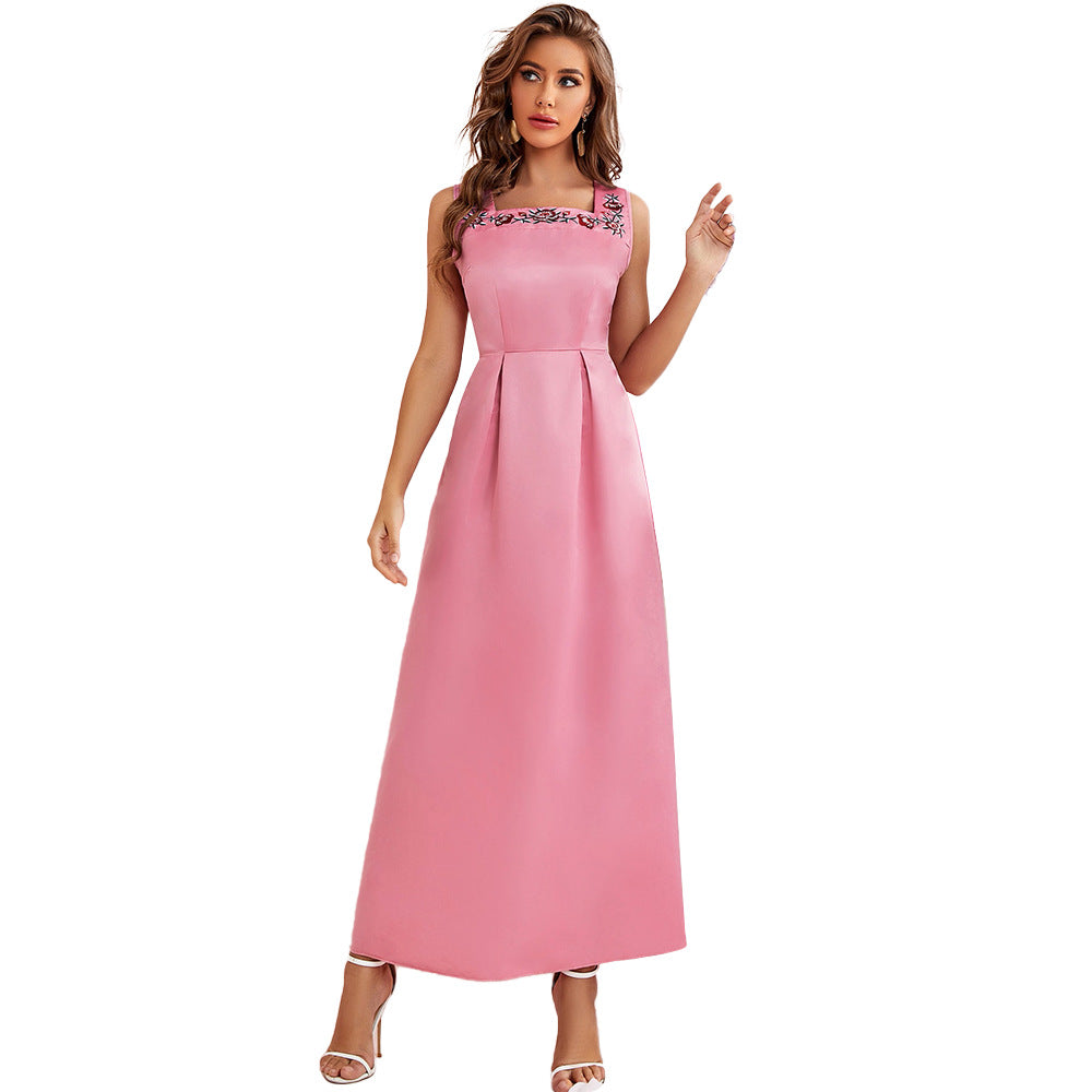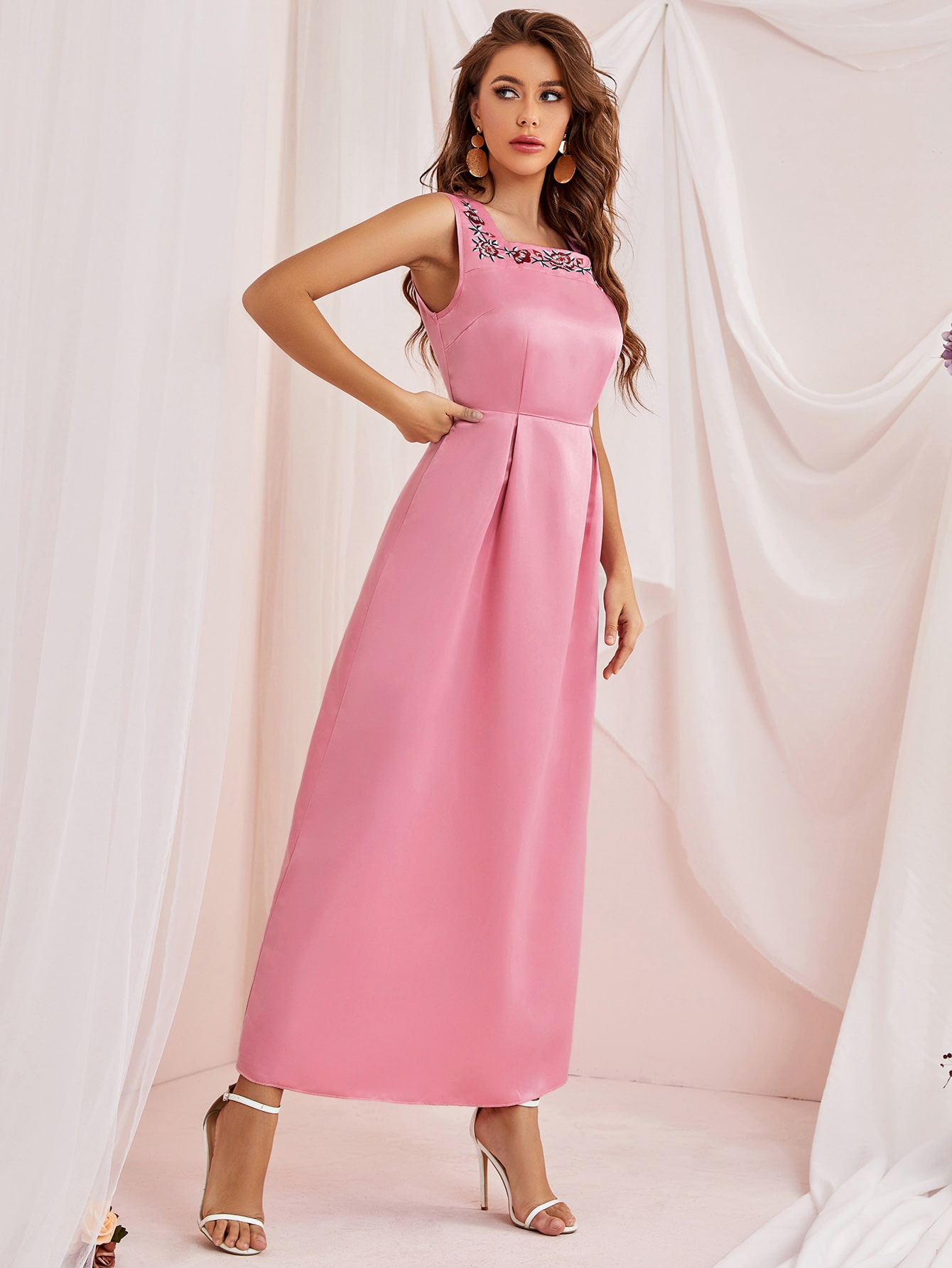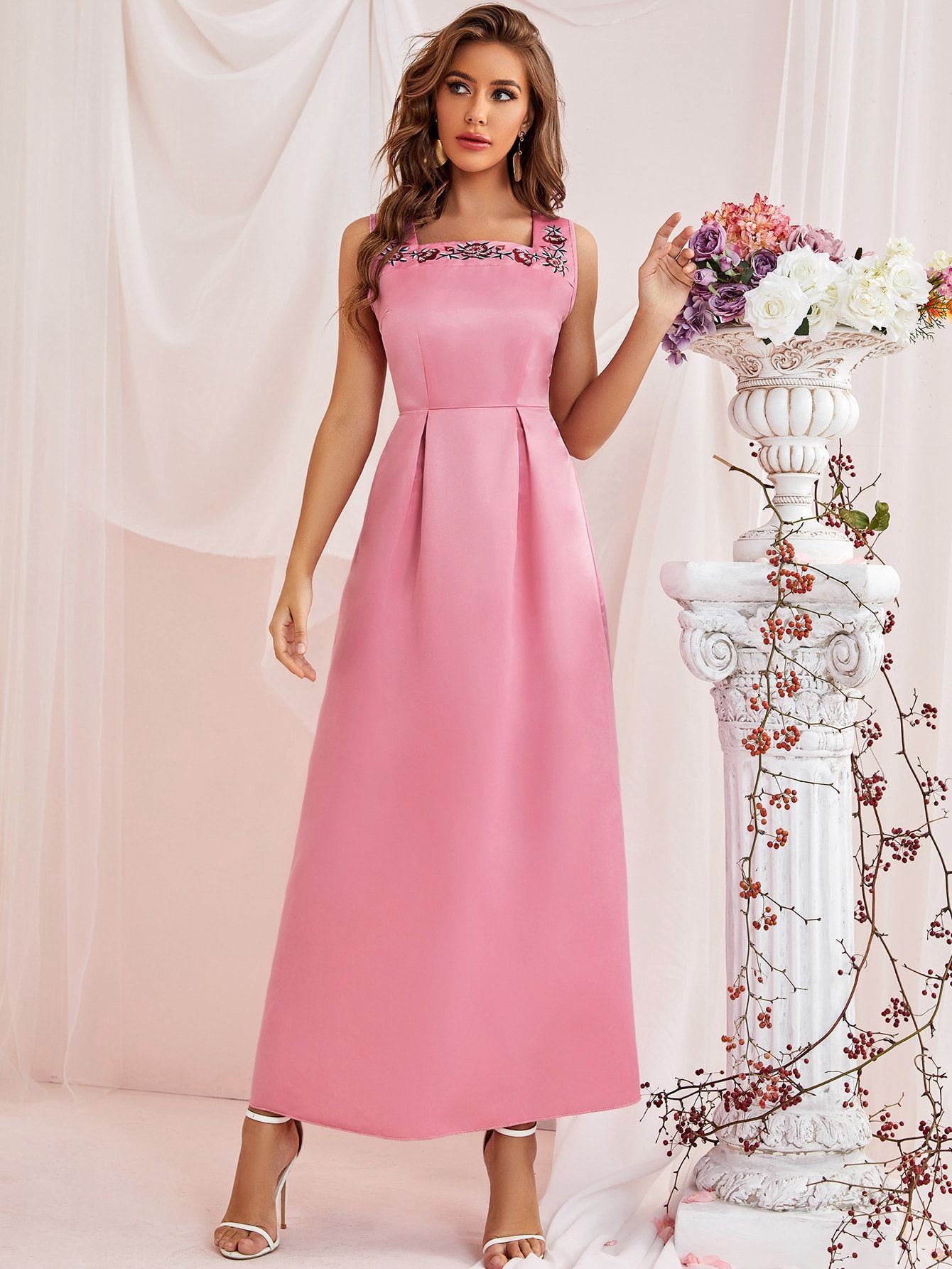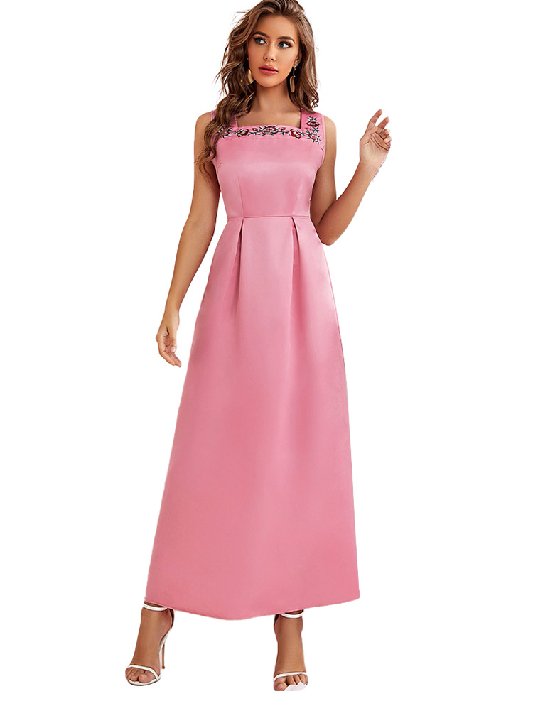 Vestido sin mangas de manga corta con cuello cuadrado y cintura alta.