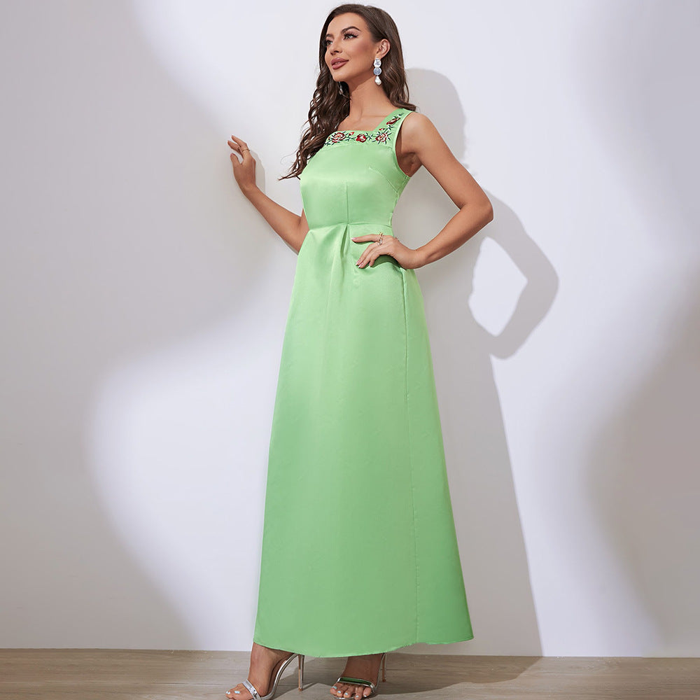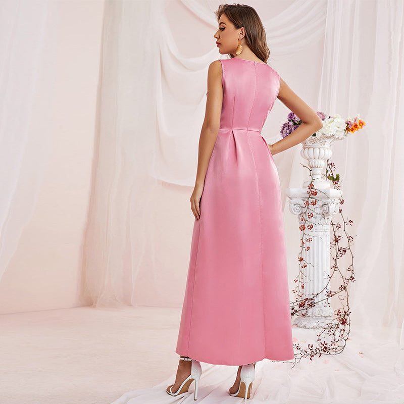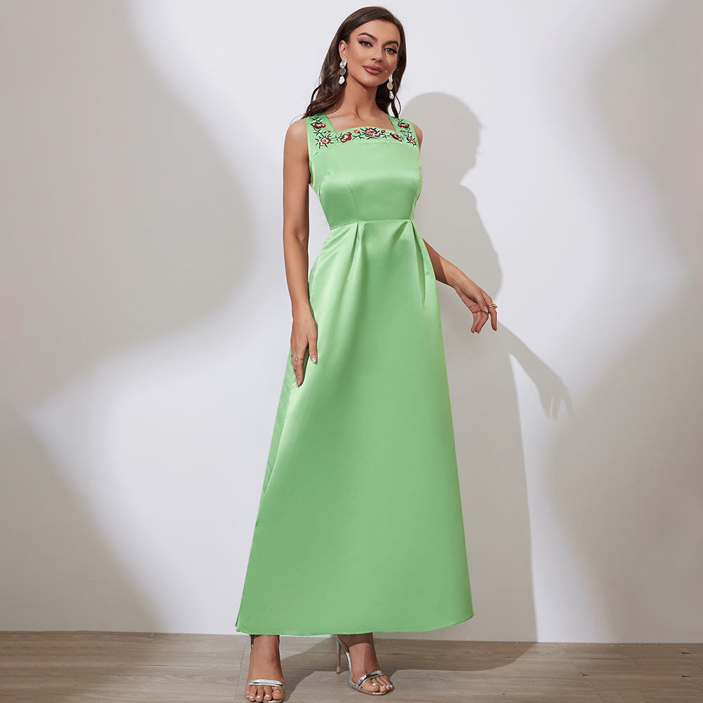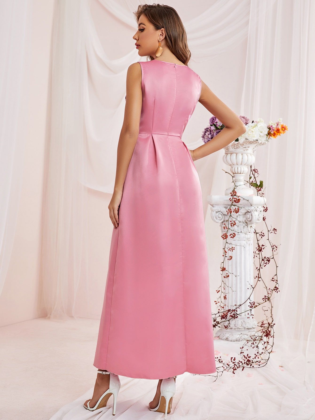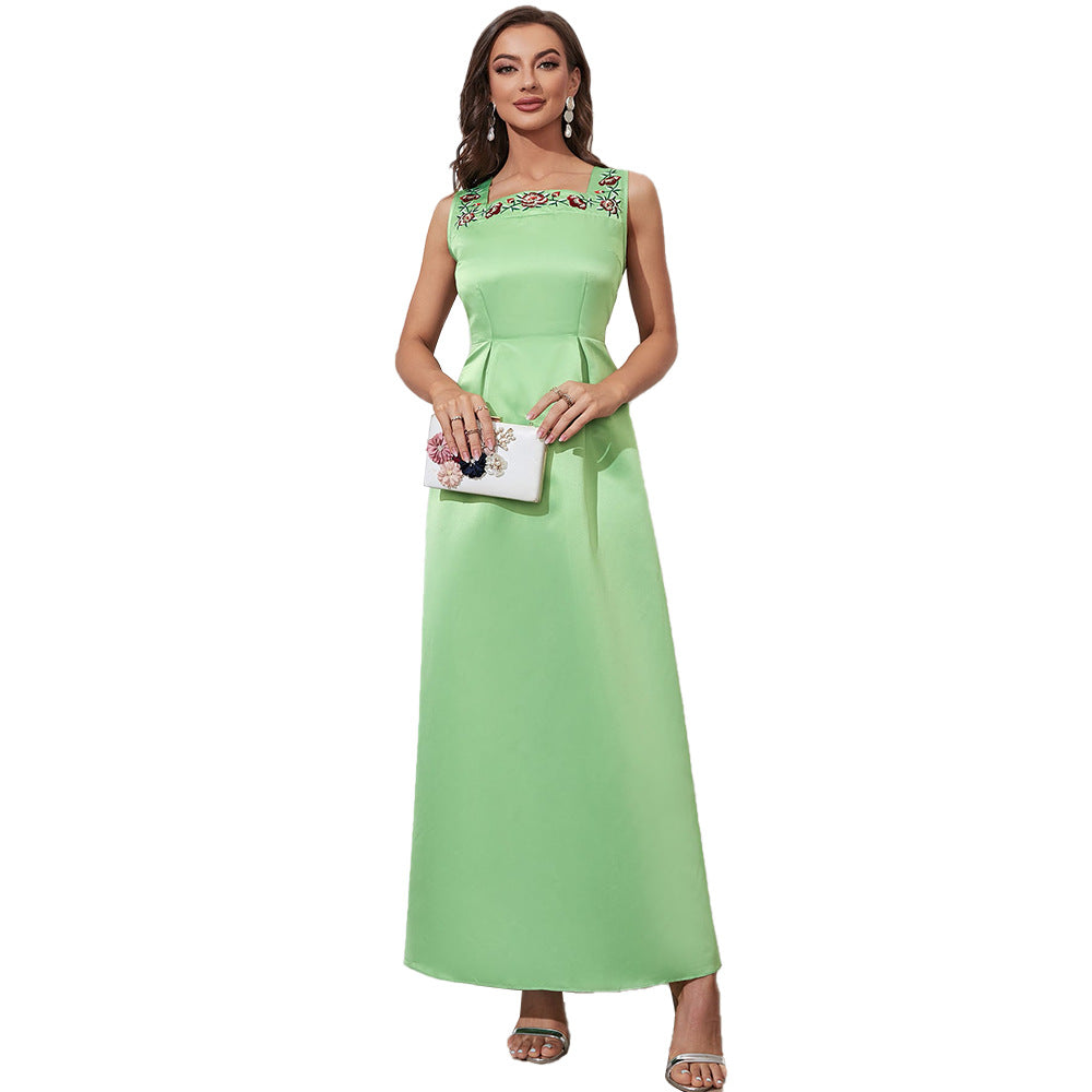 Vestido sin mangas de manga corta con cuello cuadrado y cintura alta.