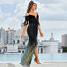 Vestido de noche elegante, largo, sin mangas, con lentejuelas, escote descubierto y espalda descubierta, vestido de dama de honor con flecos
