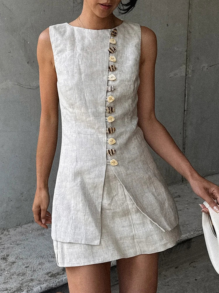 Sleeveless Front Buttoned Top and Mini Skirt Set