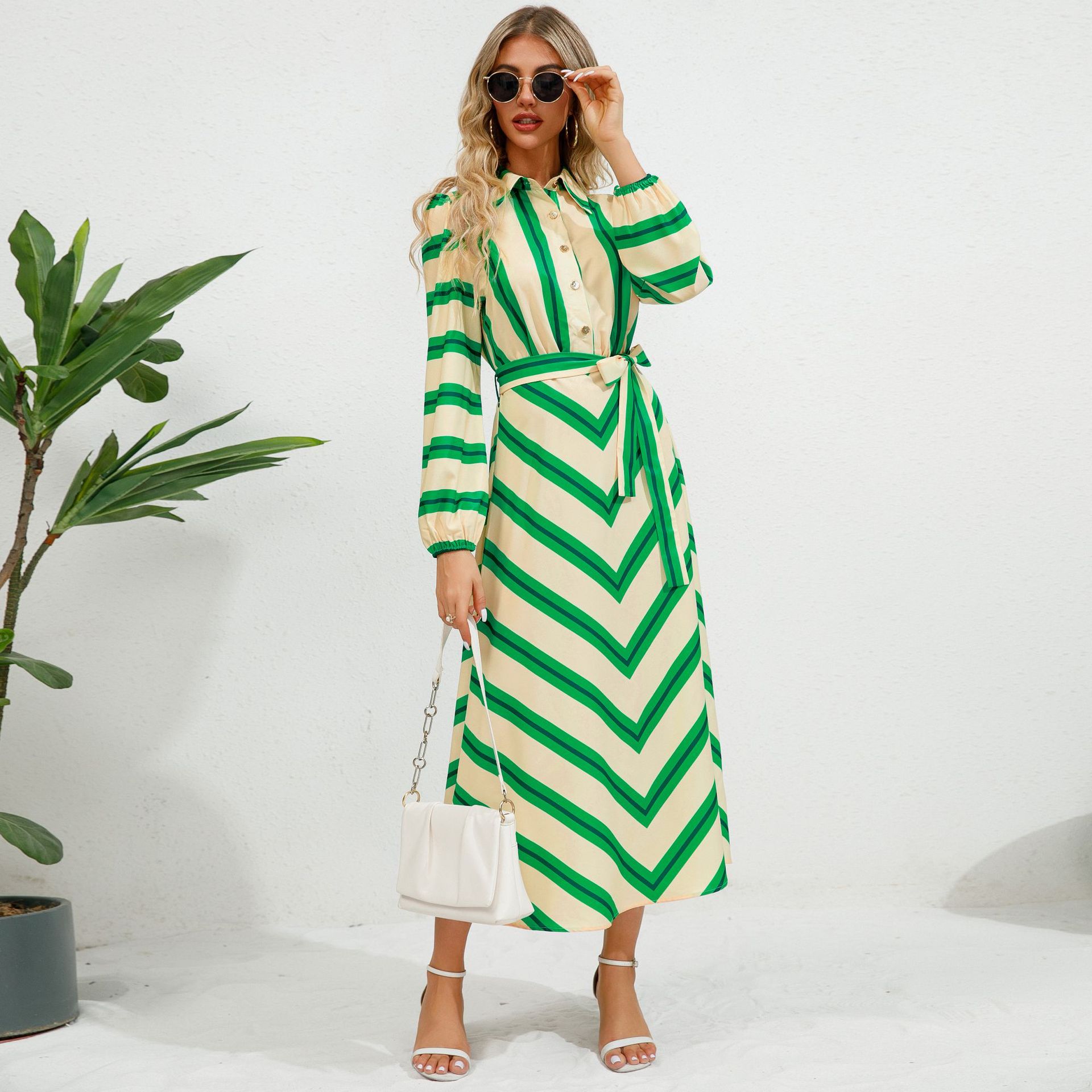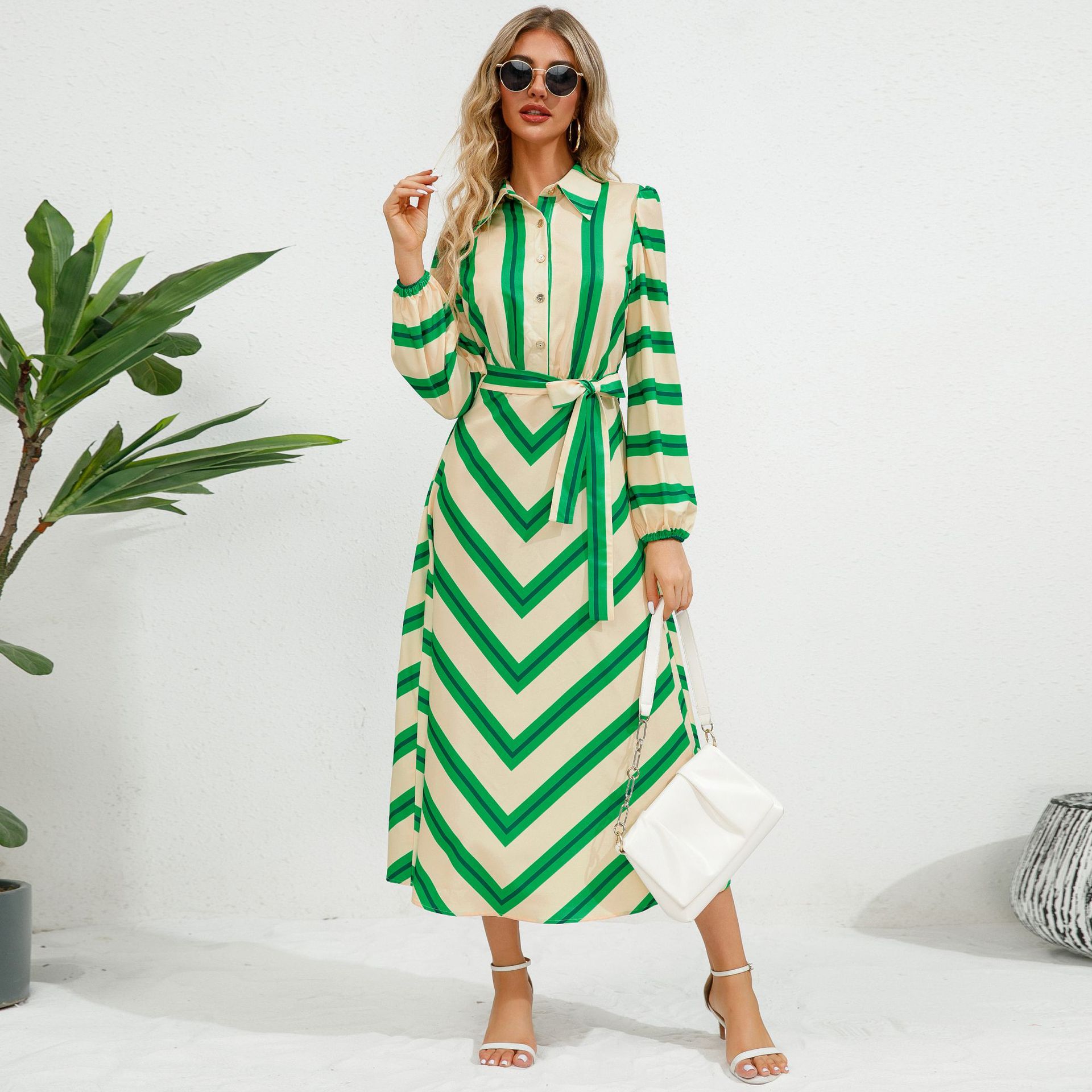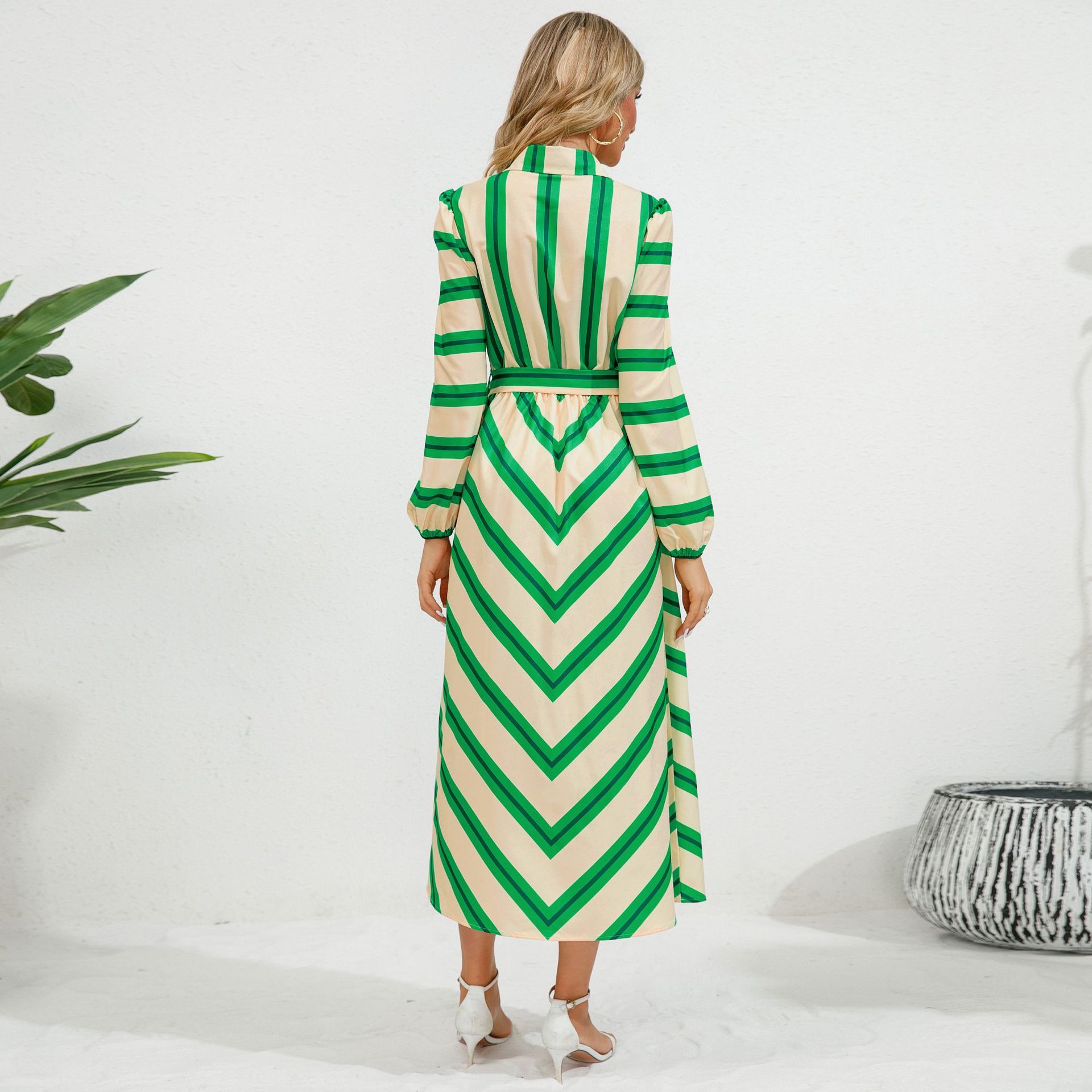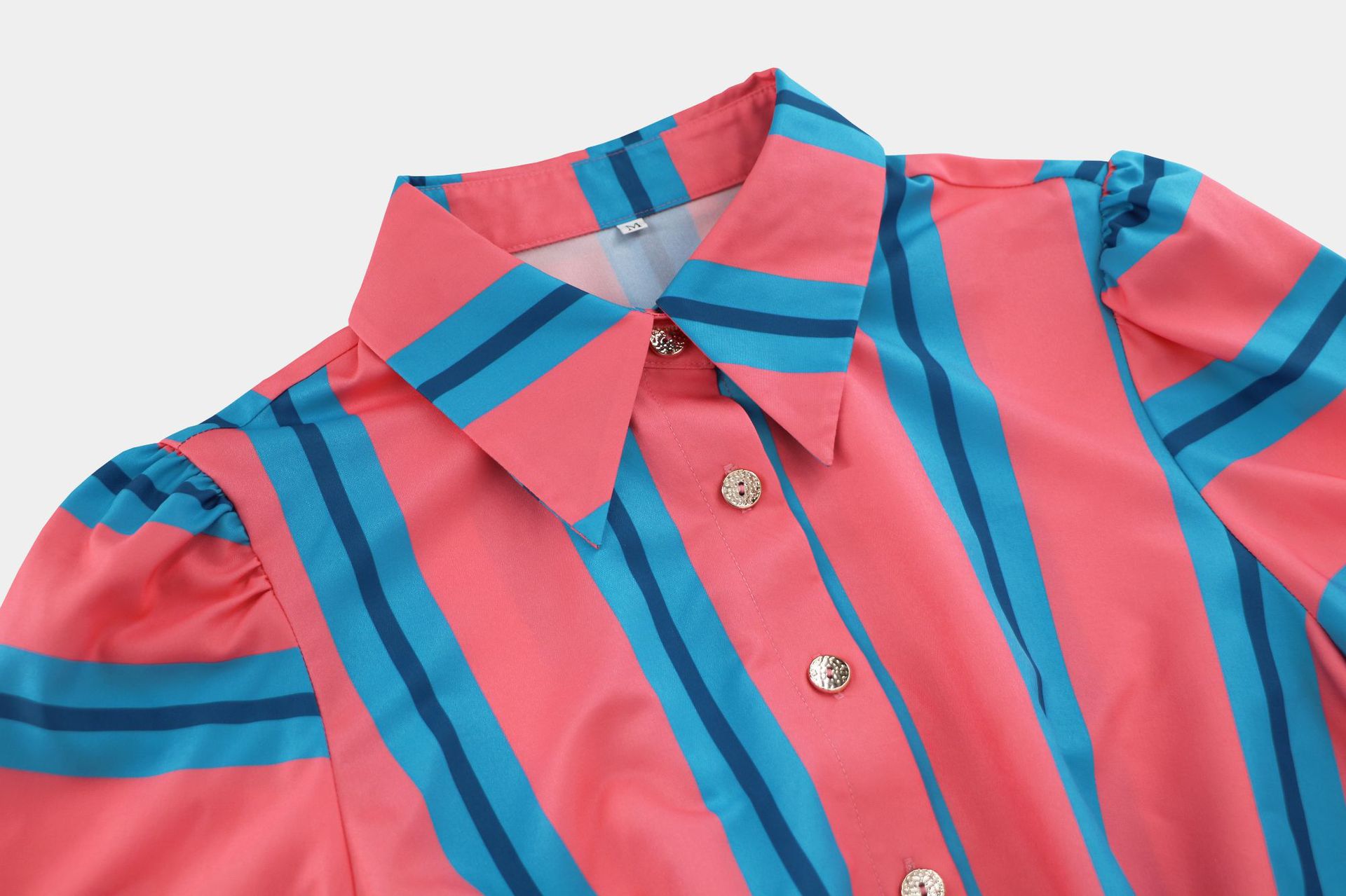 Cárdigan fino con botones y vestido camisero a rayas popular