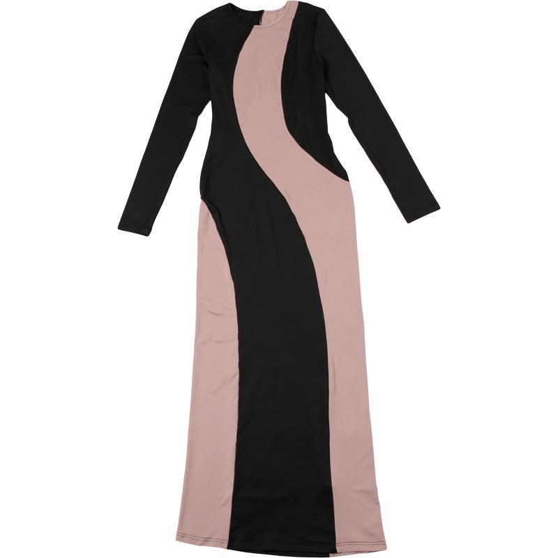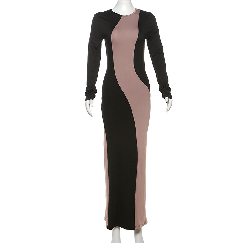 Vestido ajustado de manga larga con corte entallado y colores a juego