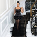 Vestido largo de malla floral con tirantes y patchwork, vestido tubo con tirantes y diamantes de imitación
