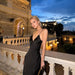 Vestido de alta costura con espalda descubierta, dulce y picante.