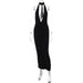 Vestido ajustado con escote en V profundo y espalda descubierta, color liso