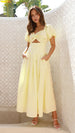 Vestido elegante de color liso con aberturas y mangas abullonadas para playa