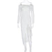 Vestido de manga larga plisada con abertura y top de tubo con hombros descubiertos en color liso