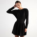 Vestido corto plisado ajustado con cintura de manga larga retro de color sólido