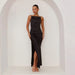Vestido largo de tubo sin mangas de color liso con corte entallado y abertura en la espalda