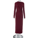 Vestido elegante intelectual de manga larga, plisado, ajustado y con cintura de color liso