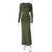 Solid Long Sleeve Irregular Splice Long Dress