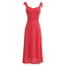 Solid Red Tie Bow Strap Midi Dress