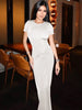 Solid Short Sleeve Ruched Maxi Dress