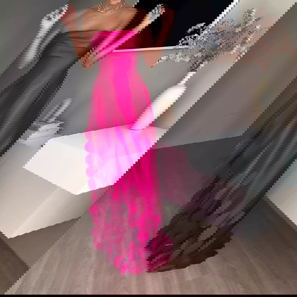 Vestido de noche de satén con escote tubo y cintura alta con costuras redondas